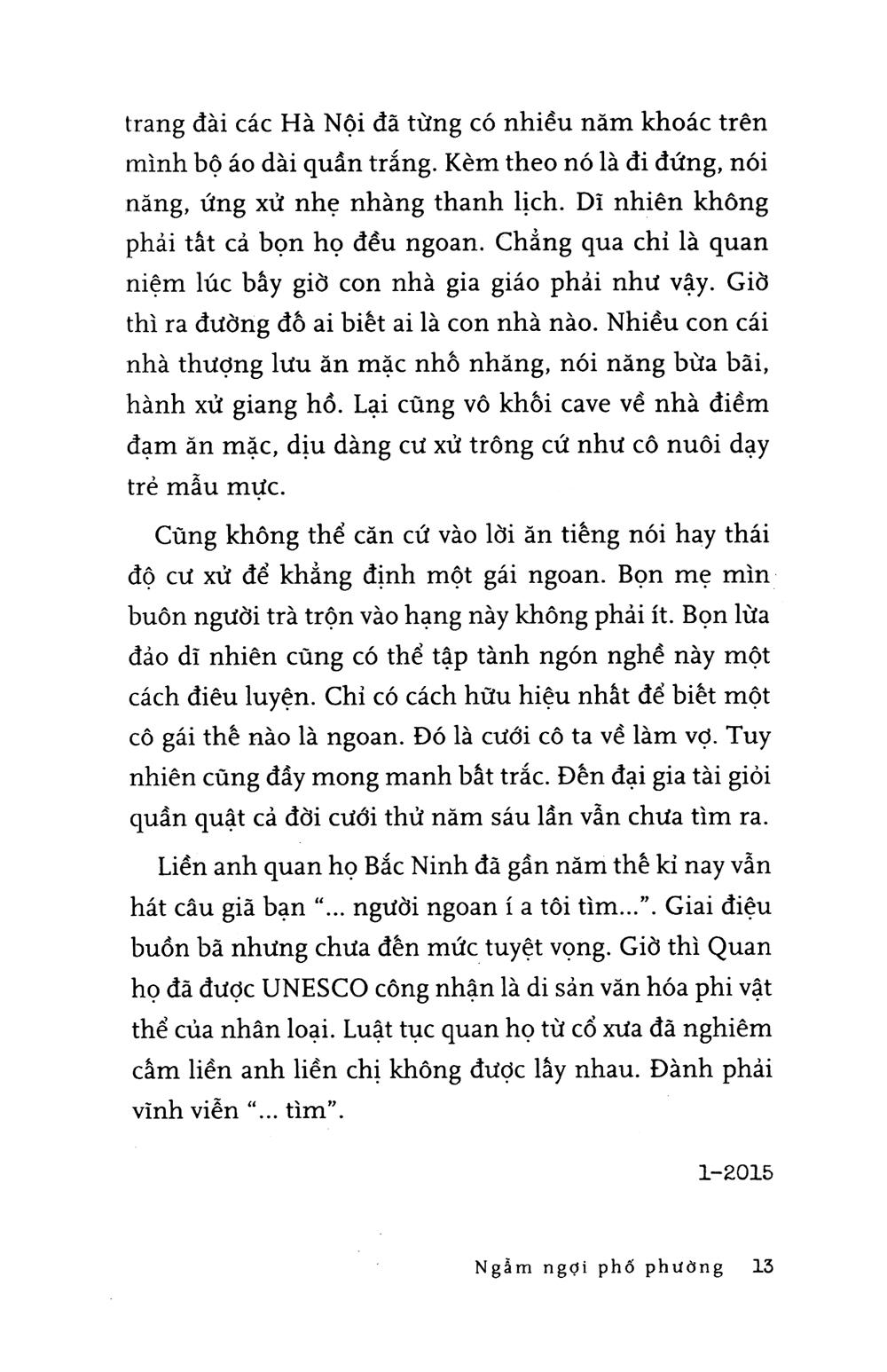 Mua tại TiktokNgẫm Ngợi Phố Phường Ngẫm ngợi phố phường là của một “tay chơi” Hà Nội viết về Hà Nội. Các tác phẩm văn chương của Họa sĩ Đỗ Phấn đều có chung một đề tài là thành phố này, nơi anh sinh ra, lớn lên và thành danh. "Hà Nội trong kí ức, tâm tưởng, trong con mắt hiện thực tỉnh táo và trong hoài niệm, mong nhớ, xót xa của riêng anh. Một Đỗ Phấn viết về Hà Nội với tất cả và những phiền muộn, buồn bã, u hoài. Nếu trưng bày tất cả các tác phẩm văn chương của Đỗ Phấn thì sẽ thấy một bức tranh thật phong phú và chân thực về Hà Nội. Hà Nội xưa và nay. Anh đã rất thành công trong việc khắc họa một Hà Nội vừa quen thuộc, gần gũi, vừa có gì đó rất riêng trong cách nhìn của Đỗ Phấn."