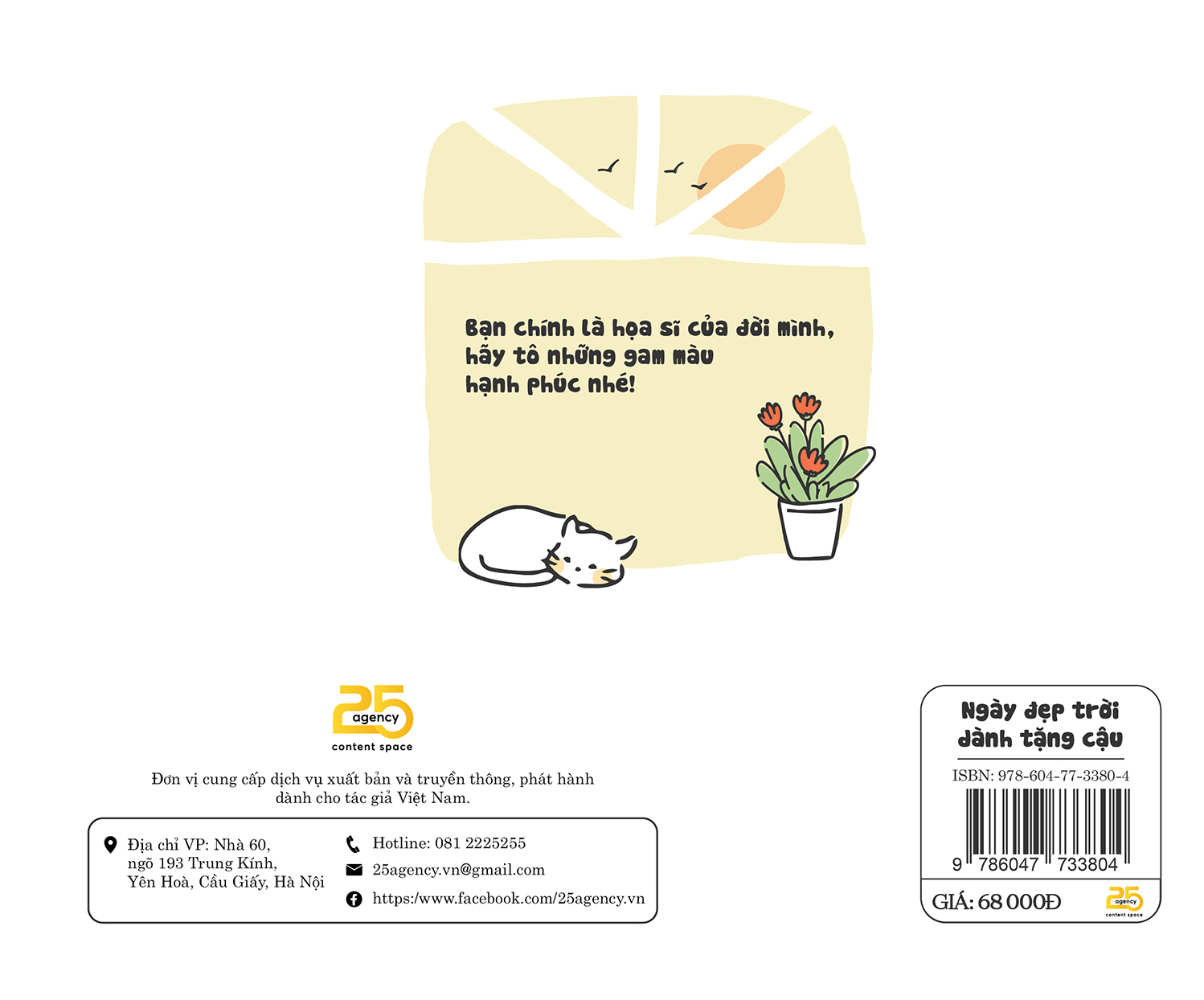 Yên bình và thật đẹp đẽ - sách tô màu "Ngày đẹp trời dành tặng cậu" là ấn phẩm độc đáo dành cho cả người lớn và trẻ em. Với những hình ảnh tinh tế và lời nhắn đầy tích cực, cuốn sách này không chỉ là một cách tuyệt vời để thư giãn mà còn là một hành trình trọn vẹn vào thế giới sáng tạo. Nó cũng là món quà dành tặng những người yêu thương