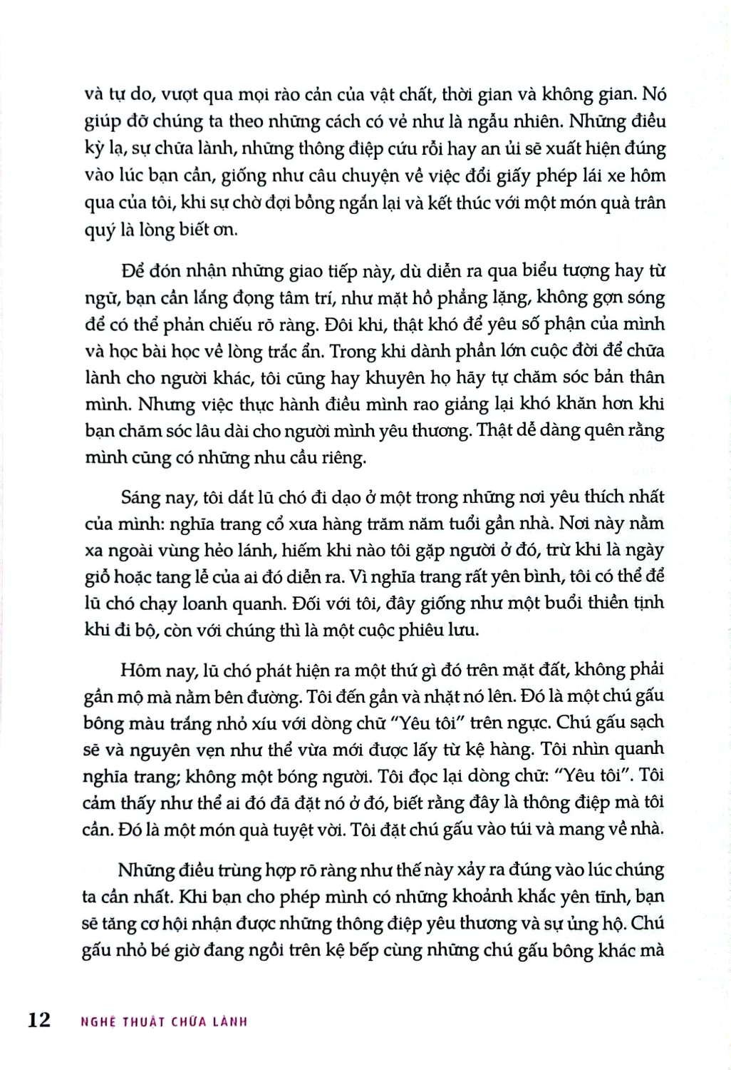 Nghệ Thuật Chữa Lành - Hành Trình Tìm Kiếm Tri Thức Và Khả Năng Tự Chữa Lành Bên Trong Bạn Hạnh phúc đích thực có được từ sự biết hài lòng và hòa bình nội tại. Sự hài lòng và hòa bình nội tại chỉ có thể đạt được thông qua sự phát triển tinh thần vị tha về tình thương, từ bi và diệt trừ vô minh, ích kỷ và tham lam Khi mở lòng, khi lắng nghe và khai thác trí tuệ bên trong và ý thức lớn hơn, chúng ta bắt đầu một hành trình hướng tới sức khỏe và chữa lành bản thân, một hành trình viên mãn và đôi khi kỳ diệu. Khi đồng ý trên hành trình này, chúng ta trở thành những nghệ sĩ và cuộc sống của chúng ta trở thành bức tranh