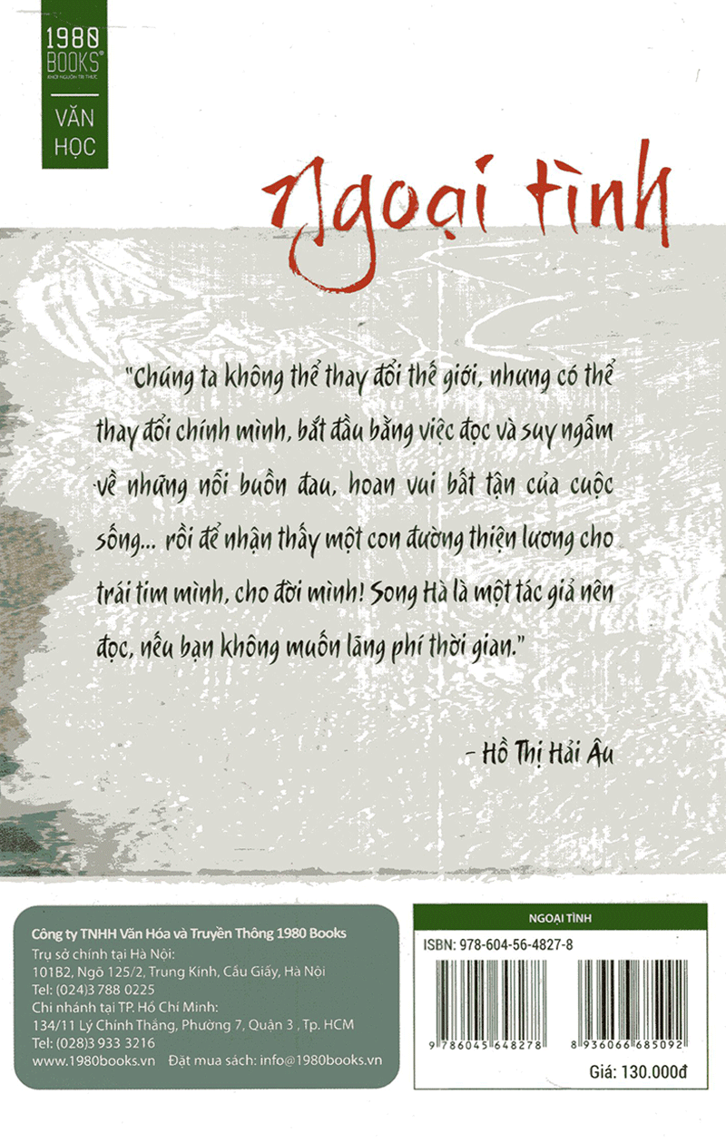Tác phẩm Ngoại tình là phiên bản 2.0 của cuốn “Nhật ký XIZ” đã xuất bản trước đây. Sách là tuyển tập 46 truyện ngắn và tản văn, với sự bổ sung nhiều câu chuyện mới và tâm huyết nhất của Song Hà. Trong lần tái ngộ độc giả này, “Ngoại tình” tiếp tục gây cảm tình với bạn đọc bằng sự hóm hỉnh, hài hước và cái duyên ngầm, sâu lắng của người viết. Người đọc sẽ vui vẻ cười với những châm biếm, tếu táo trong “Sếp chơi phây”, “Tậu ô tô”; rồi sau đó lại bùi ngùi, thương xót với “Tết ngoại”, “Đám cưới vợ cũ”
