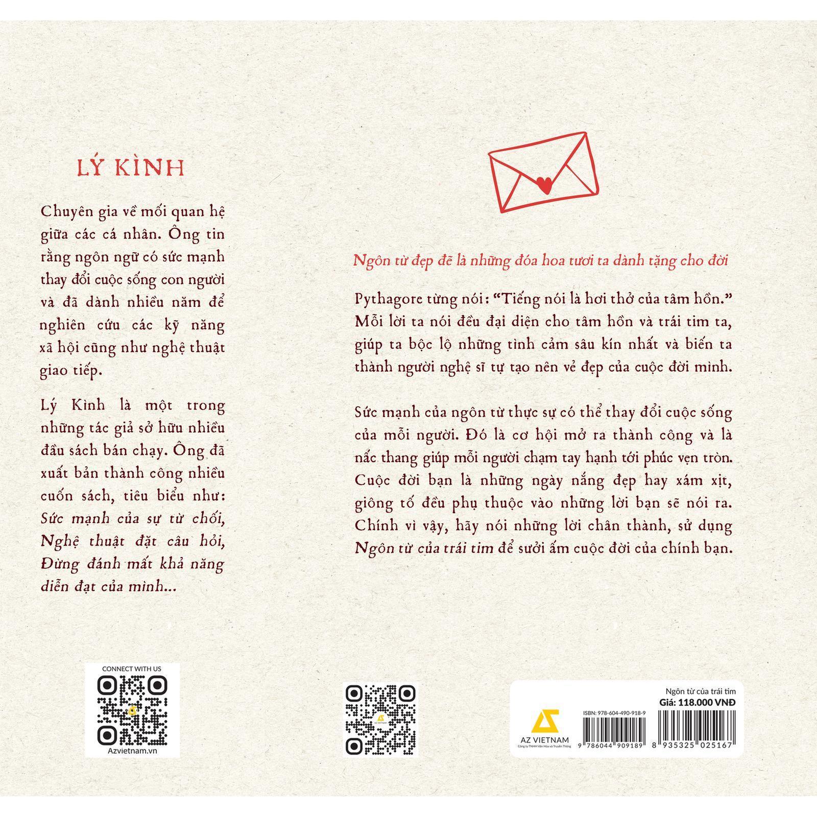 Vậy nên, hãy để những lời nói của bạn trở nên trọn vẹn hơn với “Ngôn từ của trái tim” - cuốn sách chứa đựng những góc nhìn sâu sắc của tác giả Lý Kình - dùng ngôn từ để thu phục lòng người. Ở cuốn sách này, Lý Kình thật sự biết cách sưởi ấm tâm hồn của người khác, ông không những tiết lộ bí quyết để có cuộc sống hạnh phúc và sự nghiệp thành công mà ông còn giúp chúng ta có niềm tin vào sức mạnh của ngôn từ có thể chạm đến trái tim mọi người.