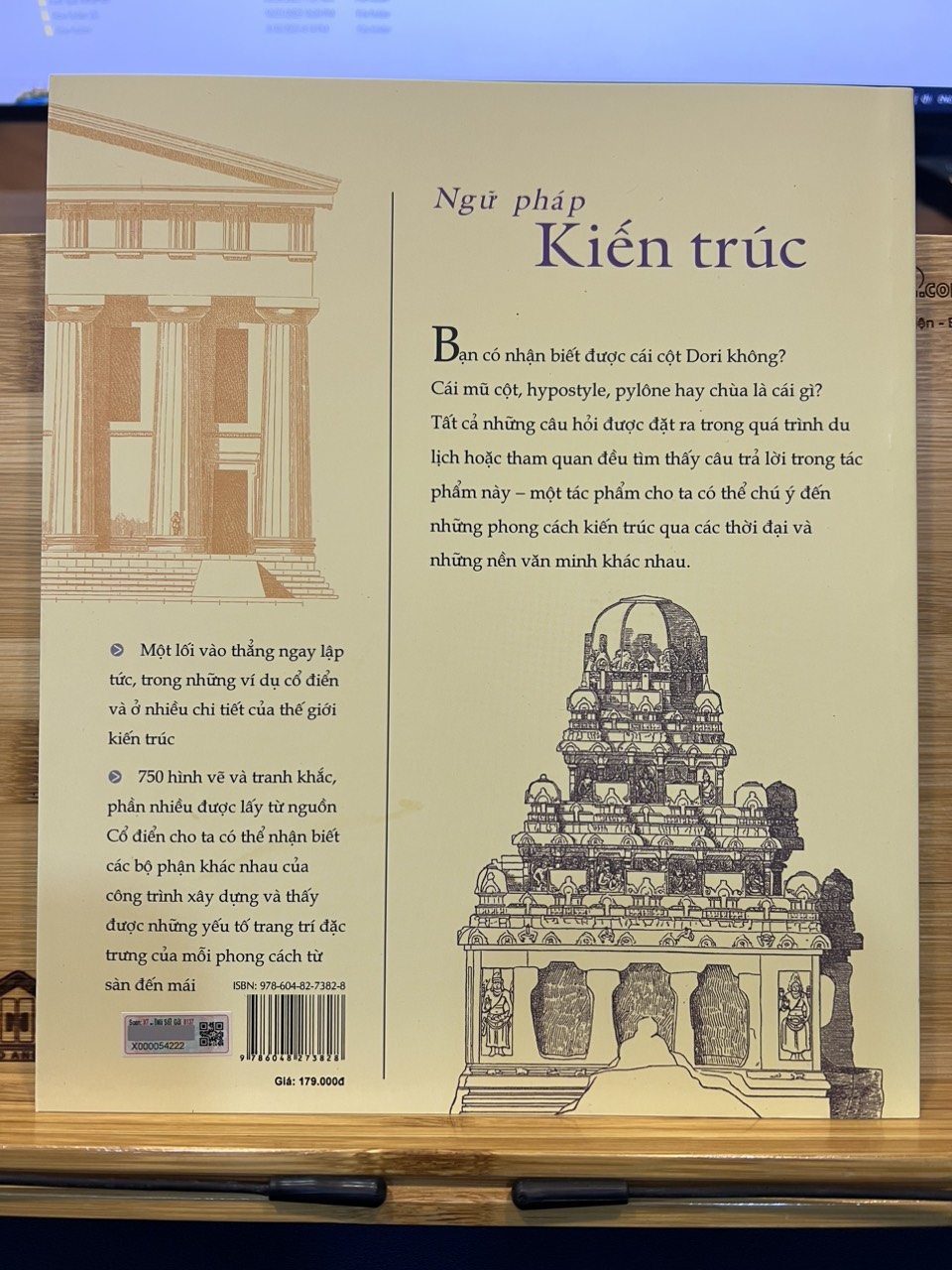 Ngữ pháp Kiến trúc làm cho sinh viên cũng như đông đảo công chúng dễ hiểu rất nhiều thuật ngữ kiến trúc dùng để mô tả các công trình trên khắp thế giới qua mọi thời đại. Thay vì sử dụng phương pháp truyền thống của từ điển chú giải (từ vựng) xếp theo vần chữ cái A, B, G chúng tôi chọn cách giới thiệu các chương sách theo thứ tự niên đại. Mỗi chương trong đó có hàng loạt tranh khắc rất đẹp phù hợp với lời bình chú của những người có uy tín.