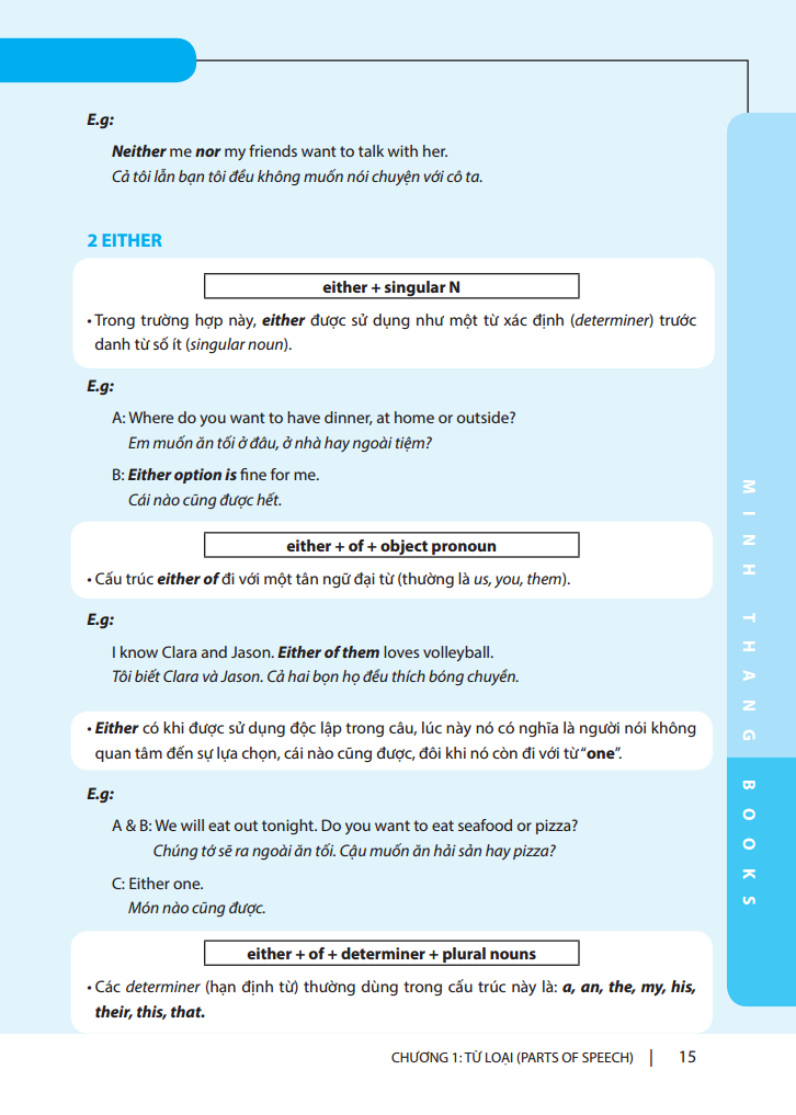 Cuốn sách các em đang cầm trên tay được đúc kết từ tâm huyết và kinh nghiệm giảng dạy và học tập của các thầy cô, các thủ khoa đại học bộ môn Tiếng Anh từ Trường Đại học Sư phạm Hà Nội, Trường Đại học Ngoại ngữ - ĐHQGHN Thấu hiểu và lắng nghe nhu cầu học tiếng Anh của các em, các thầy cô đã chung tay biên soạn bộ sách Ngữ pháp và giải thích chi tiết ngữ pháp tiếng Anh. Hi vọng đây sẽ là tài liệu gối đầu giường giúp các em có thể đạt được kết quả cao trong các kỳ thi của m.ình.
