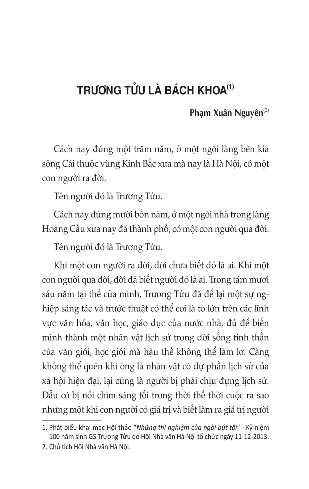 Nhà văn – Giáo sư Nguyễn Bách Khoa – Trương Tửu (1913-1999) là một trong những nhà lý luận phê bình tài ba nhất của thế hệ tiền chiến, một trong những người đi tiên