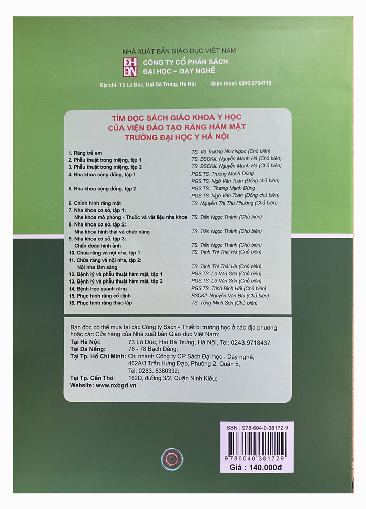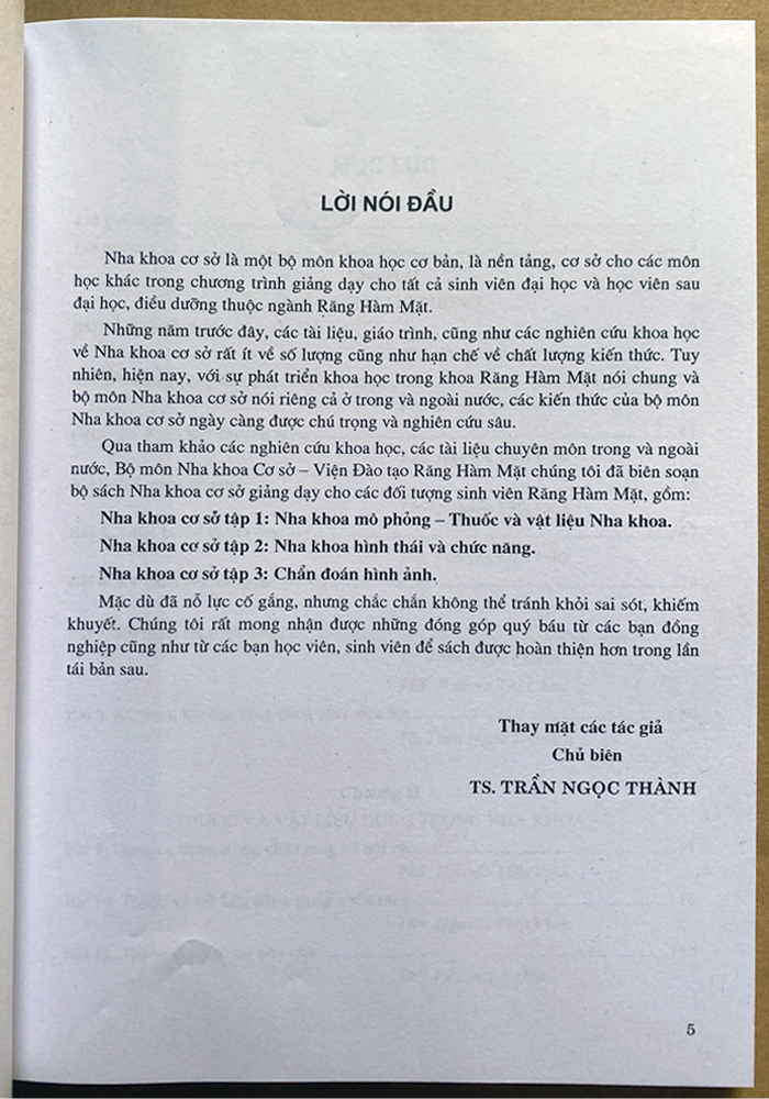 Qua tham khảo các nghiên cứu khoa học, các tài liệu chuyên môn trong và ngoài nước, Bộ môn Nha khoa Cơ sở – Viện Đào tạo Răng Hàm Mặt chúng tôi đã biên soạn bộ sách Nha khoa cơ sở giảng dạy cho các đối tượng sinh viên Răng Hàm Mặt, gồm: