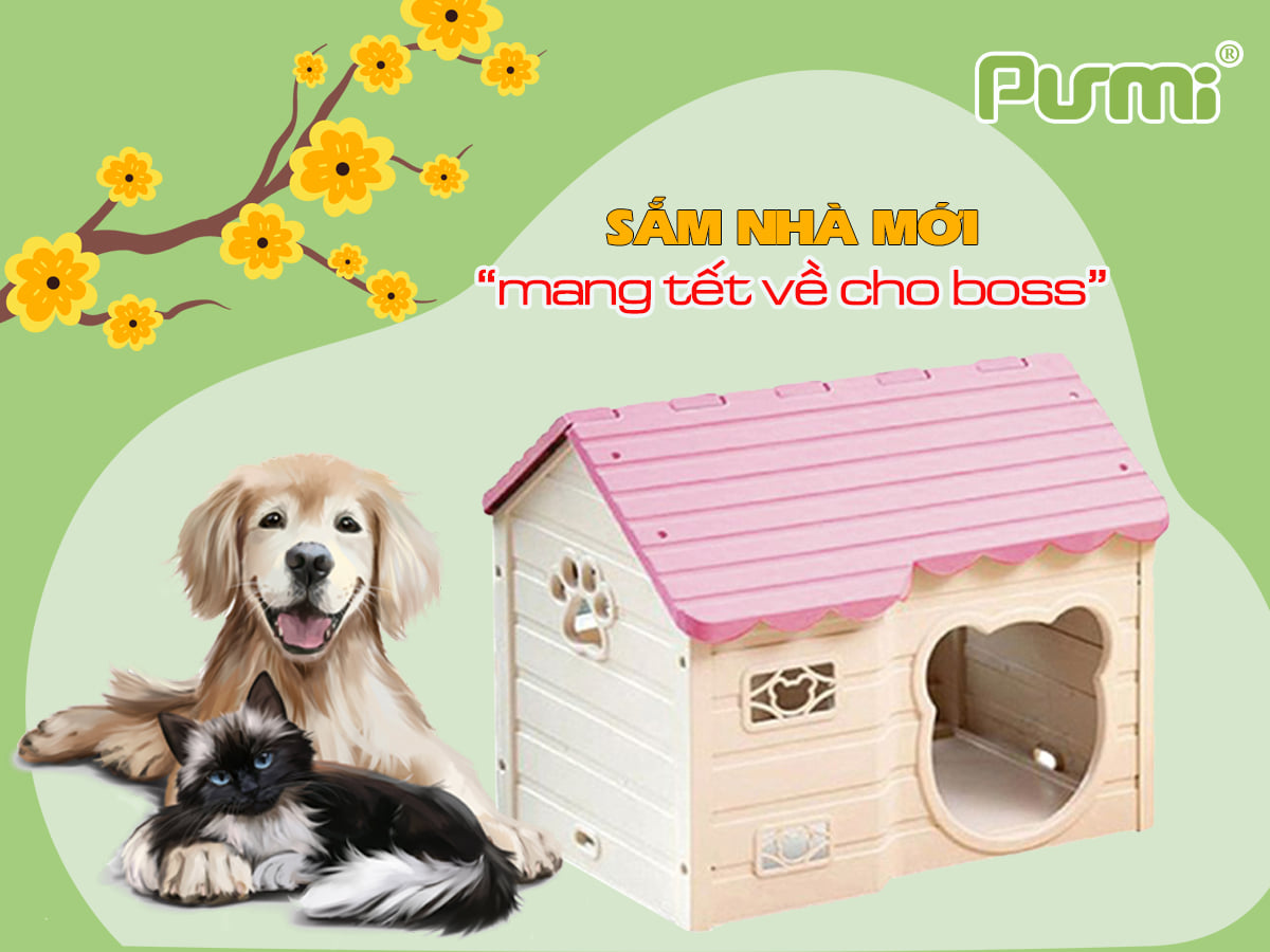 - Màu sắc: nâu, hồng và xanh bạc hà Ngôi nhà đáng yêu được thiết kế theo phong cách Châu Âu. Là không gian ấm áp và êm ái mà cún cưng của bạn luôn mơ ước.
