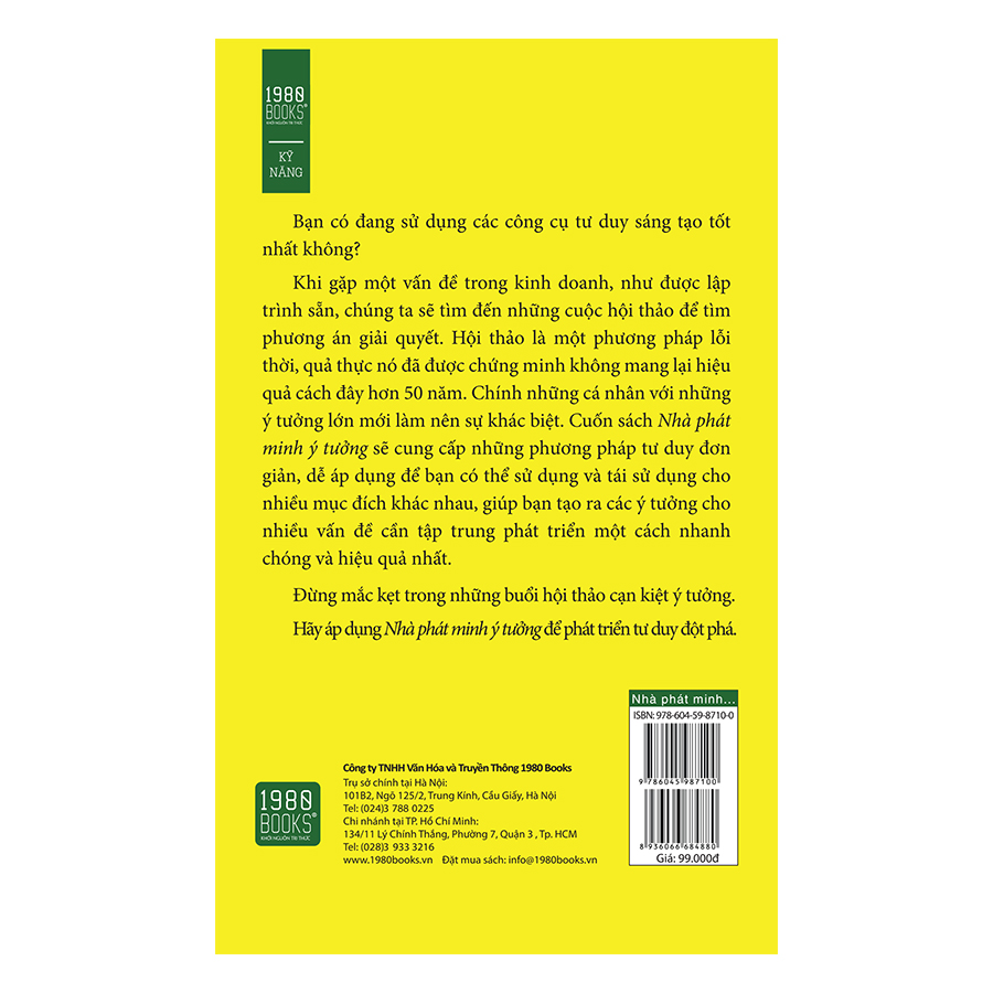 Thông qua "Nhà phát minh ý tưởng", bạn đọc sẽ trở nên tự tin hơn khi đối mặt với những thử thách. Kể cả khi bạn không tìm được đáp án cho câu hỏi ngay lập tức, nhưng nếu đã nắm được cách tư duy sáng tạo, thì những ý tưởng quý giá sẽ tự khắc tìm đến với bạn trong lúc bạn không ngờ tới.