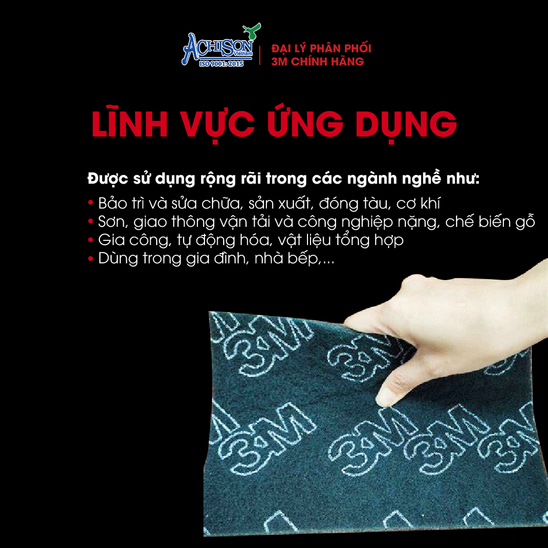 Bùi nhùi 3M Mighty Blue được sử dụng để làm sạch và mài tạo độ bám, sử dụng được trong môi trường ướt, khô và dung môi.