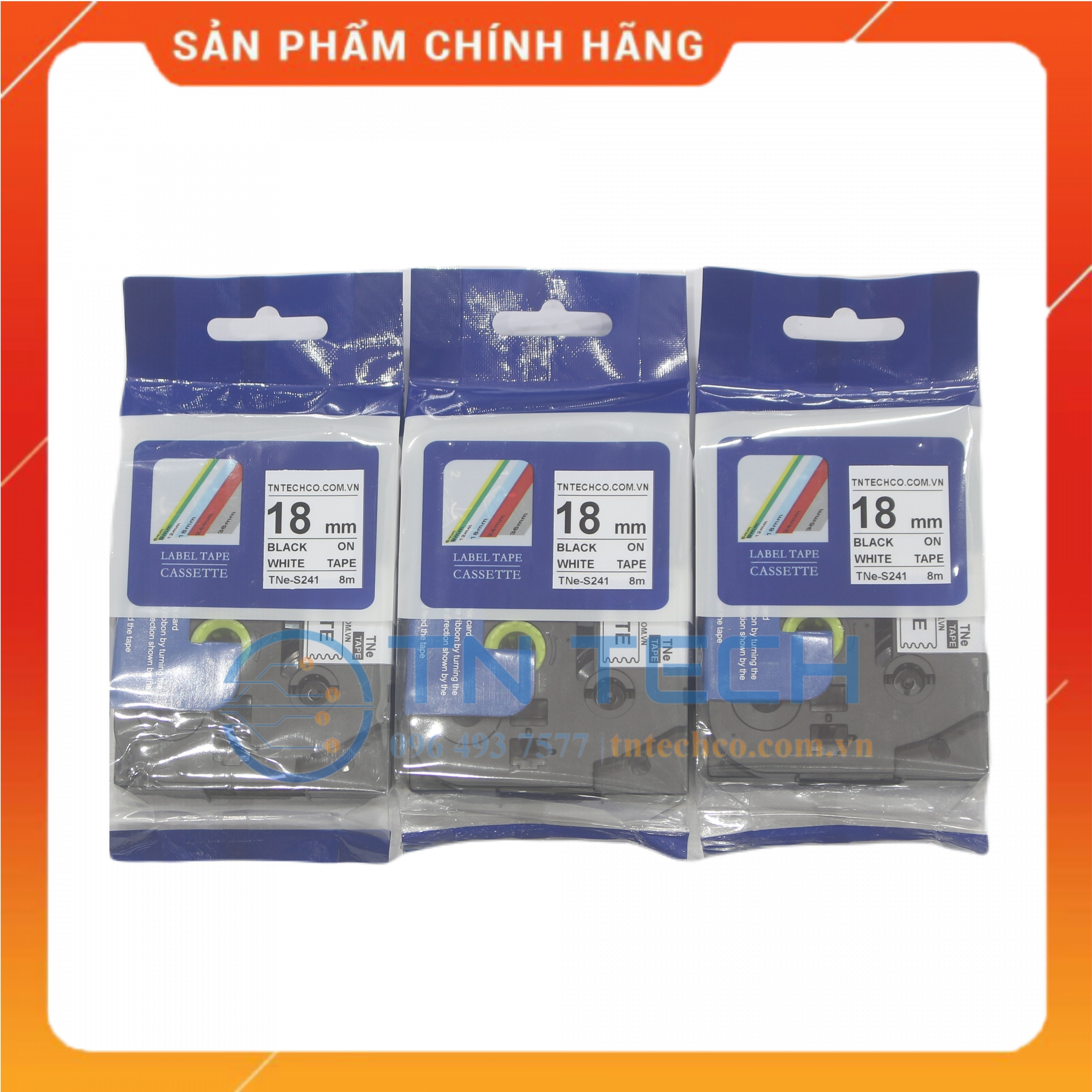 Nhãn in TNE-S241 Brother Nhãn in đa lớp sử dụng cho máy in nhãn Brother, tất cả trong 1, mực nằm bên trong, chống chịu dung môi, hóa chất, nước, dầu mỡ, nhiệt độ Mã