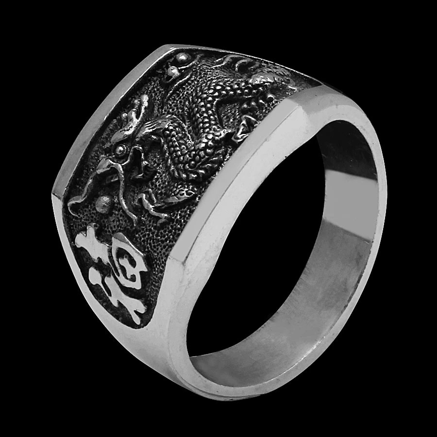 Nhẫn Nam Bạc Hiểu Minh NA577 Chữ Phúc Hình Rồng