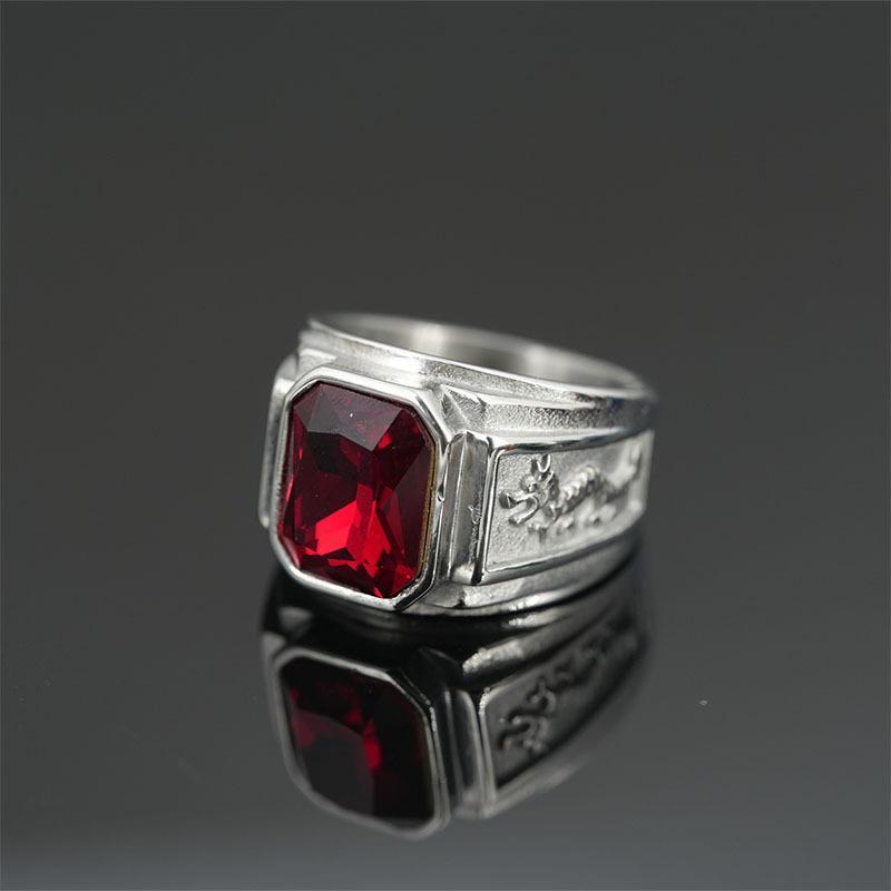 ✨Nhẫn titan - Nhẫn nam đẹp cao cấp thép không gỉ kiểu cham rồng trangsucpt đá đỏ màu trắng PTNNA249