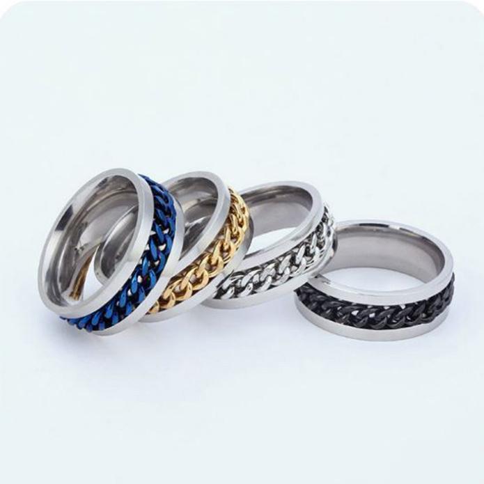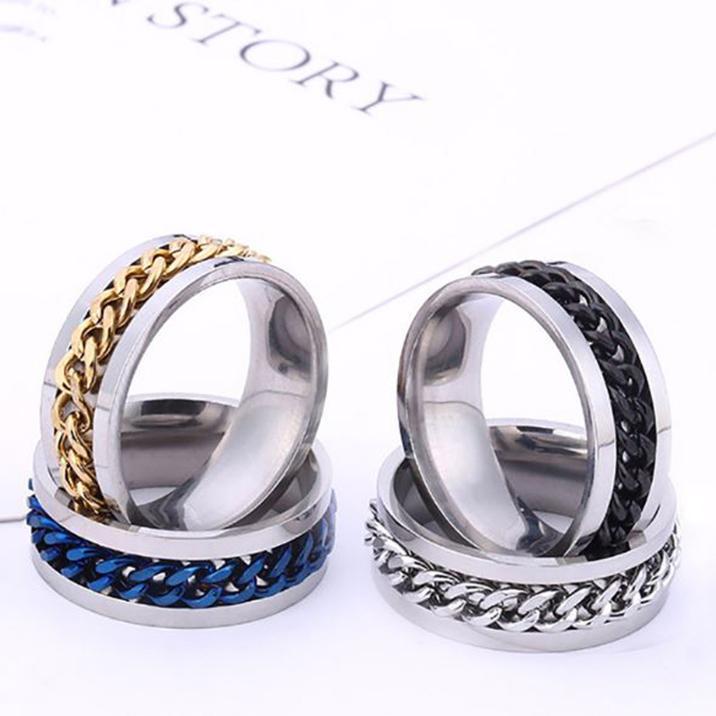 Nhẫn inox phối xích xoay nam nữ nhiều màu cao cấp thời trang thép không gỉ trangsucpt khui bia