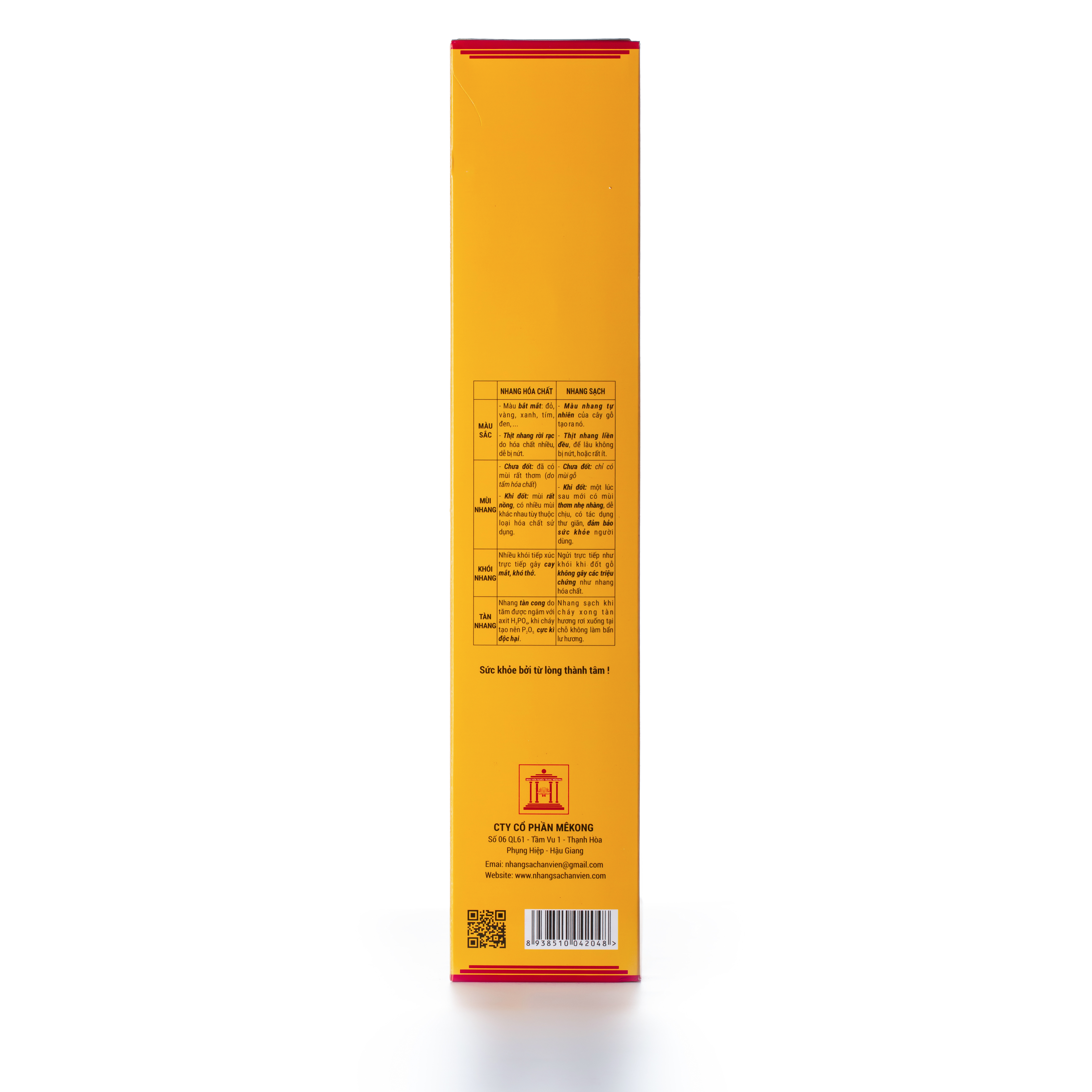 KHÔNG ĐỘC HẠI TRONG KHÓI HƯƠNG Với mục đích đem lại sức khỏe và an toàn cho người sử dụng khỏi các loại hương tẩm hóa chất độc hại, với 100% không sử dụng hóa chất 100% nguyên liệu từ thảo mộc đảm bảo sức khỏe người tiêu dùng. Đóng gói: Loại 5 cây/1túi dài 75cm đốt 6 giờ Loại 5 cây/ 1túi dài 50cm đốt 4 giờ Loại 10 cây /1túi dài 45cm đốt 3 giờ Hương nhang càng để lâu càng thơm.100% là hương loại sạch