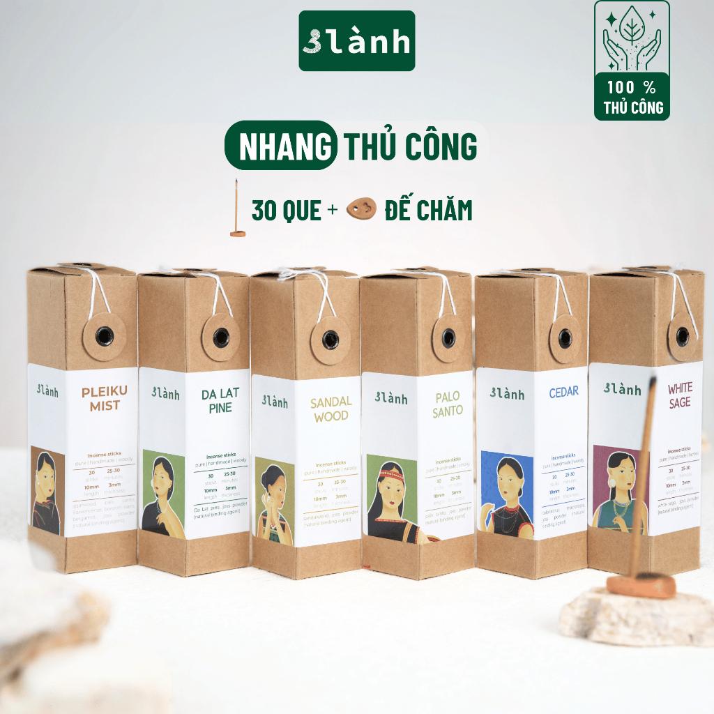 ✨Nhang Thủ Công 3 Lành Hộp 30 Que Nhiều Mùi 100 % Tự Nhiên Tặng Kèm Đế Chăm Không Hóa Chất Xông Thơm