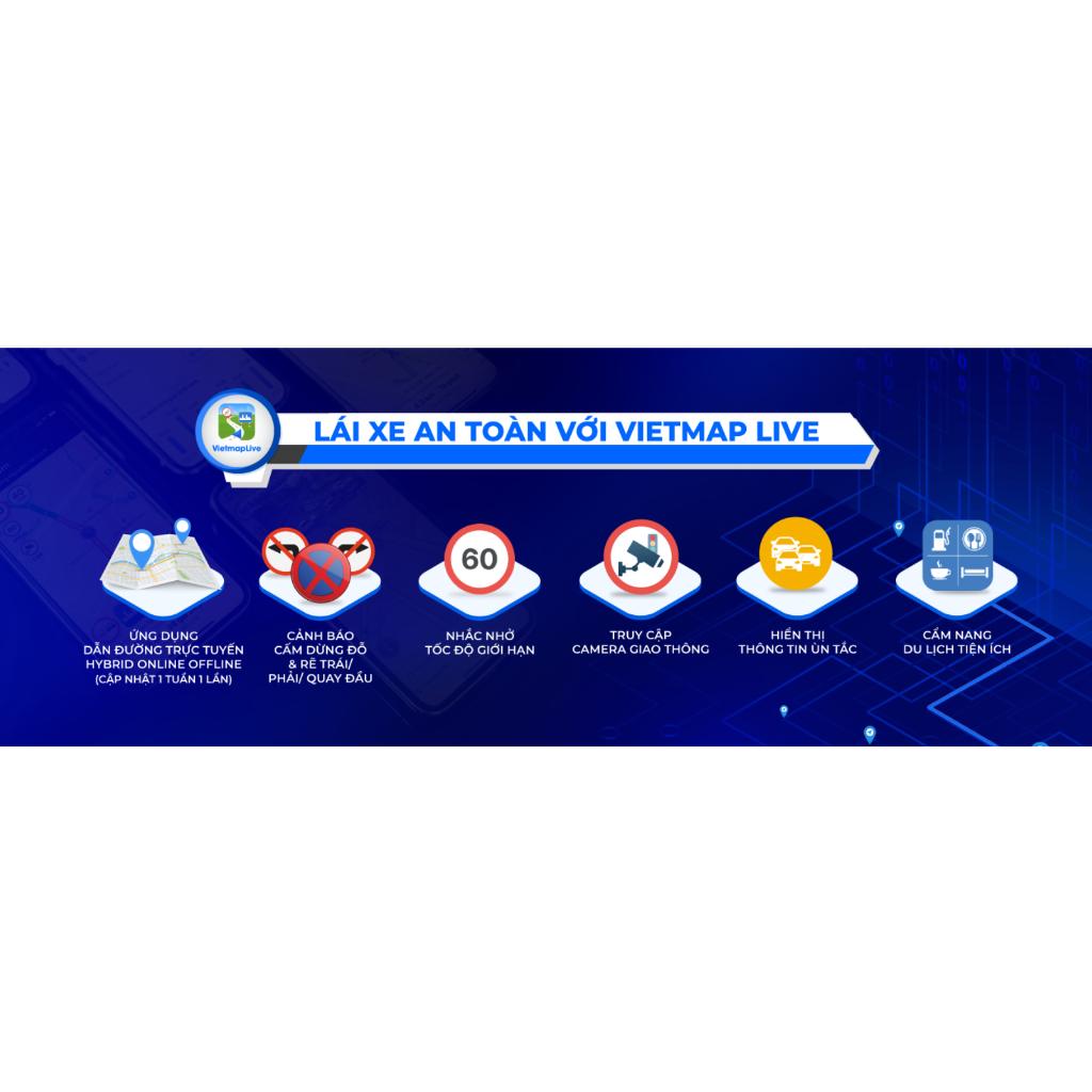 Có 2 loại màn hình Vietmap Live PRO bảo hành 1 năm hoặc bảo hành 2 năm. Kết nối với màn hình theo xe qua Apple Carplay và Android auto - Cảnh báo tắc đường, hình ảnh giao lộ thực tế - Liên kế ePass - VETC tính phí cầu đường - Cài đặt tương thích cả IOS và Androi - Cập nhật biển báo tốc độ, giới hạn tốc độ - Cảnh báo khu vực đô thị, khu dân cư - Cảnh báo Camera phạt nguội - Cảnh báo khu vực cấm: cấm dừng đỗ, cấm rẽ, cấm quay đầu - Hiển thị hình ảnh camera giao thông
