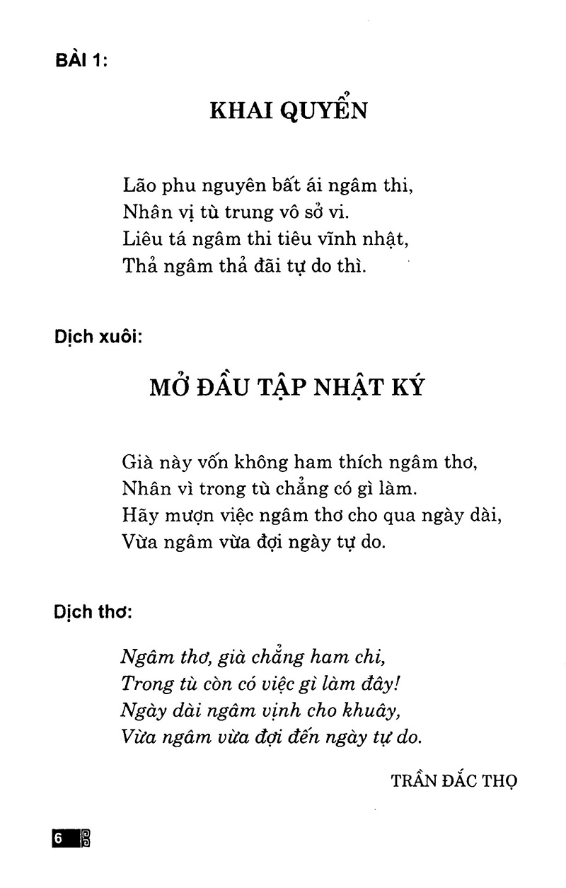 Chủ tịch Hồ Chí Minh là vị lãnh tụ thiên tài của Đảng và nhân dân Việt Nam, anh hùng giải phóng dân tộc, danh nhân văn hoá thế giới. Người kết tinh trong mình những phẩm chất và giá trị tinh thần cao quý nhất của giai cấp công nhân và dân tộc việt Nam. Cuộc đời, sự nghiệp của Người là một tấm gương sáng vì dân, vì nước. Trong suốt cuộc đời hoạt động cách mạng, Người đã trải qua nhiều khó khăn, gian khổ, thậm chí nguy hiểm đến tính mạng, nhưng dù bất kỳ hoàn cảnh nào. Người cũng vẫn luôn lạc quan, tin tưởng vào thắng lợi của cách mạng. Tinh thần ấy thể hiện rõ trong nhiều trước tác của Người, trong đó tập thơ Nhật Ký Trong Tù.