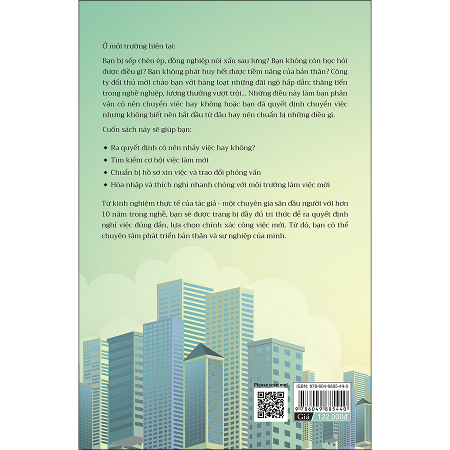 Từ kinh nghiệm thực tế của tác giả - một chuyên gia săn đầu người với hơn 10 năm kinh nghiệm, bạn sẽ được trang bị đầy đủ tri thức để ra quyết định nghỉ việc đúng đắn, lựa chọn chính xác công việc mới. Từ đó, bạn có thể chuyên tâm phát triển bản thân và sự nghiệp của mình.
