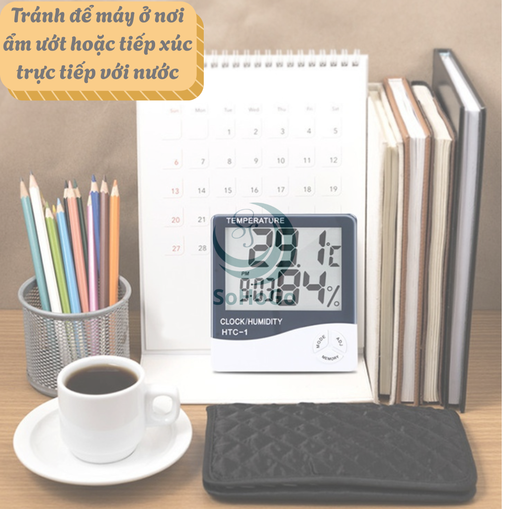 - Màn hình LCD: hiển thị rõ ràng nhiệt độ (°C/°F), độ ẩm (%RH), đồng hồ (12/24h)