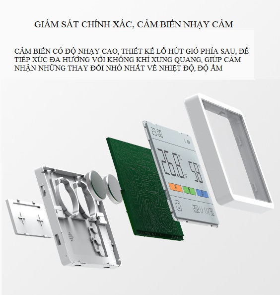 - Nhạy cảm, giám sát chính xác Tích hợp cảm biến độ nhạy cao, làm mới trong vài giây, thiết kế nạp khí ở mặt sau, cảm giác chính xác những thay đổi về nhiệt độ, độ ẩm