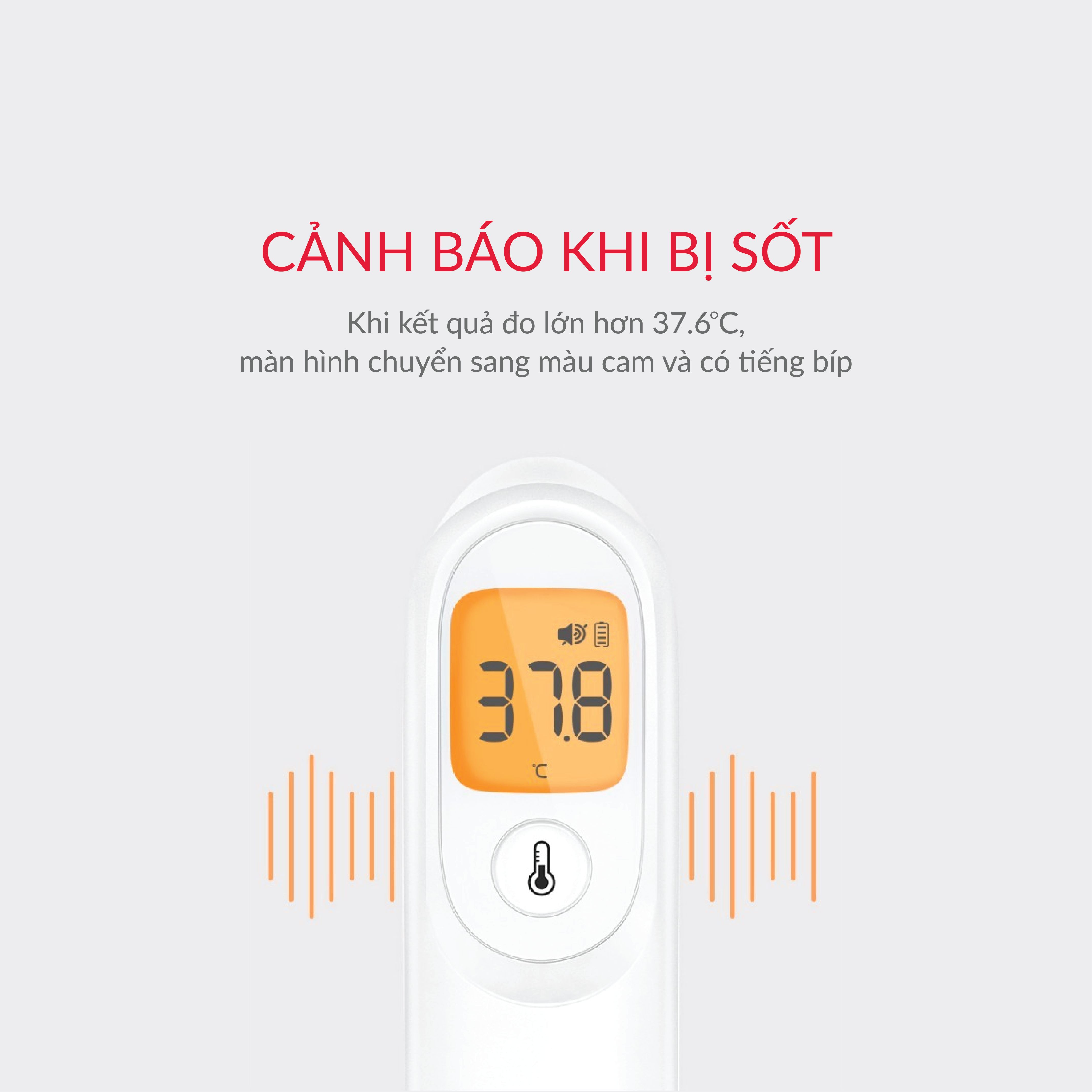 Nhiệt kế điện tử hồng ngoại không tiếp xúc *Công nghệ đo cảm biến tia hồng ngoại cho kết quả chính xác cao *Đo nhiệt độ cơ thể ở trán không tiếp xúc, trả kết