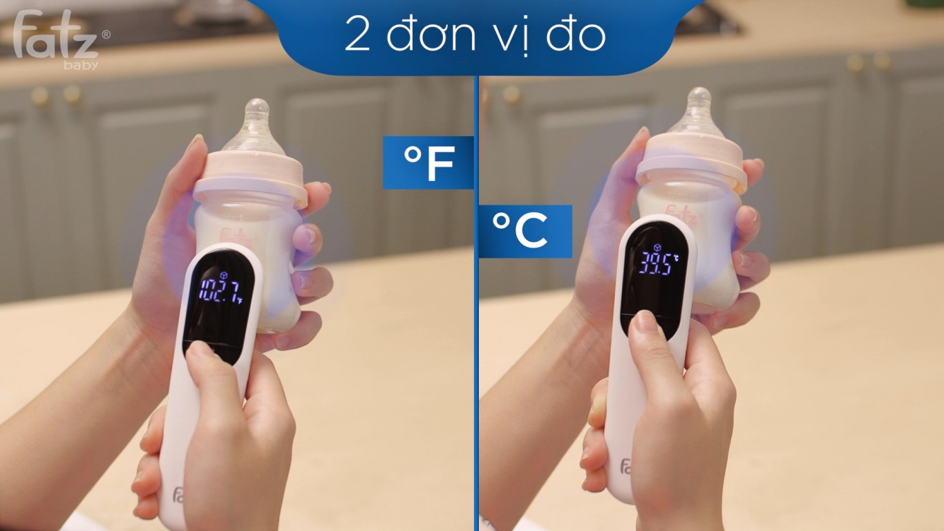 Nhiệt kế là vật dụng không thể thiếu với mỗi gia đình đặc biệt khi bạn đang chăm sóc 1 em nhỏ thì việc đo nhiệt độ cho bé sẽ khó khăn hơn rất nhiều. Nhanh, chính xác với độ tin cậy cao là tiêu chí của dòng nhiệt kế không tiếp xúc Prompt của nhà FATZBABY. Prompt 1 đảm bảo những tiêu chí cơ bản nhất cho mẹ, đo nhiêt độ cho bé không cần tiếp xúc qua trán. Ngoài ra máy còn đo được nhiệt độ sữa, nhiệt độ phòng mà không cần mua sắm thêm các nhiệt kế phụ khác. Độ bền của máy lên tới 5 năm với chế độ bảo hành 1 đổi 1 trong 2 năm. 1. THIẾT KẾ VÀ CÔNG DỤNG - Nhiệt kế Prompt 1 được sử dụng với 3 chức năng: Đo nhiệt độ cơ thể (đo trán), đo nhiệt độ bề mặt, đo nhiệt độ phòng bằng cả độ C và độ F - Khoảng nhiệt độ đo: Chế độ đo thân nhiệt: 32°C ~ 43°C (89.6°F ~ 109.4°F); Chế độ đo bề mặt: 0°C ~ 60°C (32°F ~ 140°F); - Chế độ đo nhiệt độ phòng: 0°C ~ 40°C (32°F ~ 104°F) - Chức năng nhắc nhở nhiệt độ quá mức: Ở chế độ thân nhiệt, nếu nhiệt độ cơ thể đo được cao hơn hoặc bằng 38,0 ° C (100,4 ° F), máy sẽ rung ba lần. - Chức năng bộ nhớ: Bộ nhớ có thể lưu kết quả 32 lần + Ở trạng thái bật, nhấn nút “BỘ NHỚ (MEM)”, màn hình sẽ hiển thị dữ liệu đo gần nhất. + Nhấn giữ nút “BỘ NHỚ (MEM)” trong 5 giây, tất cả dữ liệu bộ nhớ hiện tại sẽ bị xóa và khôi phục về cài đặt gốc. - Tiết kiệm năng lượng: tự động tắt nguồn sau 30 giây không sử dụng - Độ bền lên tới 5 năm sử dụng - Bảo hành 1 đổi 1 trong 24 tháng kể từ ngày mua hàng 2. THÔNG SỐ KỸ THUẬT • Pin: DC 3V (2 pin AAA) • Cảm ứng nhiệt độ: Cảm ứng hồng ngoại • Khoảng cách đo: <3cm (1.2in) • Khoảng đo: - Chế độ đo thân nhiệt: 32°C ~ 43°C (89.6°F ~ 109.4°F) - Chế độ đo bề mặt: 0°C ~ 60°C (32°F ~ 140°F) -Chế độ đo nhiệt độ phòng: 0°C ~ 40°C (32°F ~ 104°F) • Độ chính xác: - 32.0°C ~ 34.9°C (89.6°F ~ 94.8°F) - 35.0°C ~ 42.0°C (95°F ~ 107.6°F) - 42.1°C ~ 43°C (107.8°F ~ 109.4°F) • Độ lặp lại: ≤0.2°C(0.4°F) • Độ phân giải: 0.1°C (0.1°F) • Thời gian đo: 1 giây • Bộ nhớ: 32 bộ • Điều kiện môi trường: - Nhiệt độ môi trường: 10°C ~ 40°C (50°F ~ 104°F) - Độ ẩm tương đối: M 85%