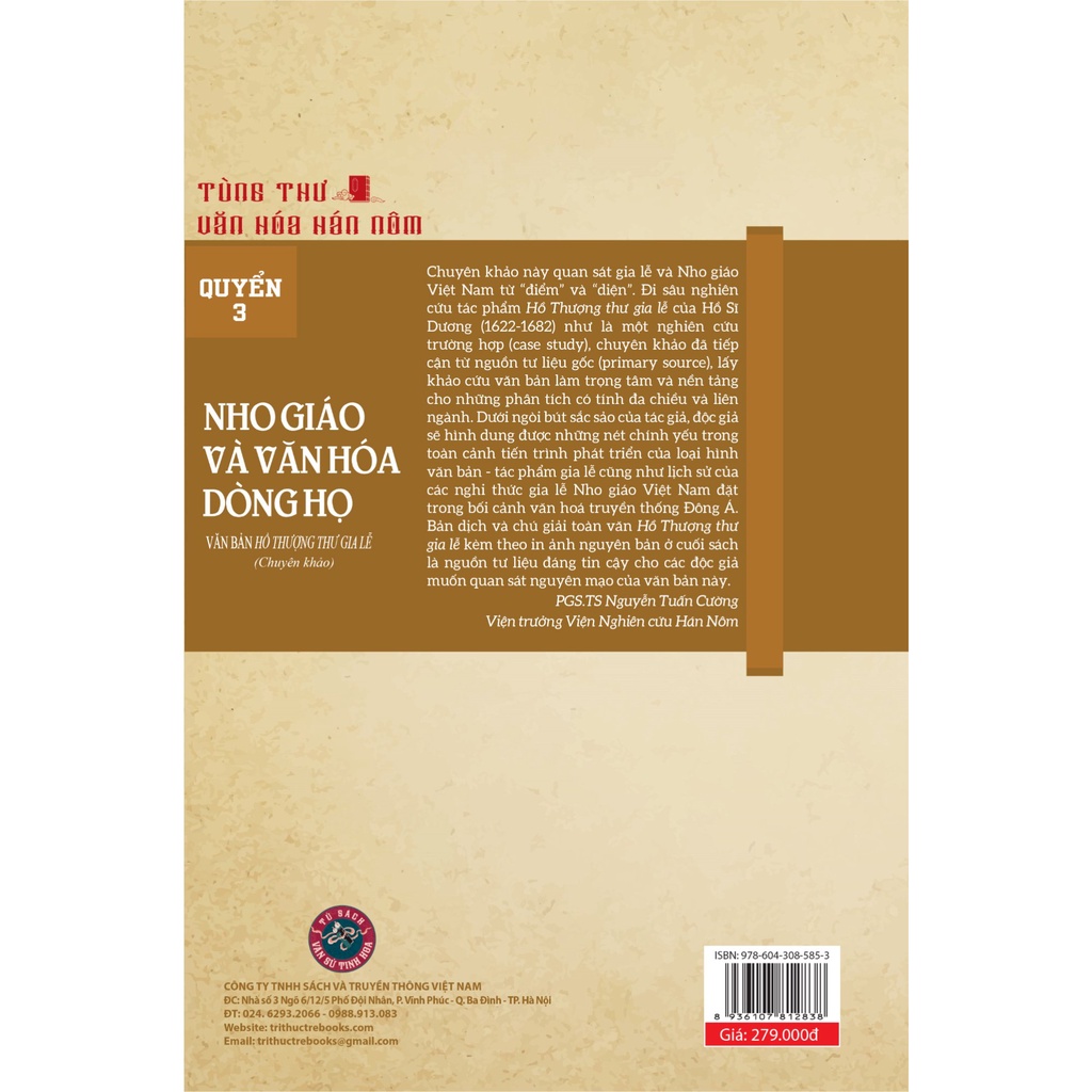 GIỚI THIỆU VỀ CUỐN SÁCH Nho giáo và văn hóa dòng họ: Văn bản Hồ Thượng thư gia lễ Gia lễ ở tầng nghĩa giản đơn nhất, là từ chỉ hoạt động nghi lễ trong gia đình dòng họ. Không chỉ là những nghi thức, gia lễ còn mang giá trị thượng tầng, trở thành một trong những công cụ hỗ trợ tư pháp và nâng cao đạo đức Nho giáo. Trong bối cảnh “tam thuận” với thời đại Nho giáo, tầng lớp Nho sĩ đông đảo, thư tịch gia lễ Nho giáo ấn hành, gia lễ Việt Nam đã chuyển biến từ hình thái gia lễ Phật giáo sang gia lễ Nho giáo, tạo nên hiệu ứng hai chiều. Hồ Thượng thư gia lễ của Hồ Sĩ Dương (1622 - 1682) được coi là trước tác nòng cốt hình thành nên diện mạo gia lễ Nho giáo thời Lê Trung hưng; ảnh hưởng sâu rộng và toàn diện đến phong tục tín ngưỡng của người Việt Nam trước thế kỷ XX. Đến nay, Hồ Thượng thư gia lễ dường như hoàn thành sứ mệnh và kết thúc chức năng xã hội, nhưng tác phẩm vẫn hội tụ nhiều giá trị về đạo đức, văn hóa, tôn giáo… hữu ích đối với xã hội đương đại. Vì vậy, việc nghiên cứu tác phẩm là cần thiết để khơi dậy và phát huy chức năng xã hội tích cực của tác phẩm. Chuyên khảo Nho giáo và văn hóa dòng họ: Văn bản Hồ Thượng thư gia lễ nghiên cứu Hồ Thương thư gia lễ trên nguyên tắc lấy văn bản làm trọng tâm, tiếp cận liên ngành nhưng bám sát văn bản. Chuyên khảo này quan sát gia lễ và Nho giáo Việt Nam từ “điểm” và “diện”. Đi sâu nghiên cứu tác phẩm Hồ Thượng thư gia lễ của Hồ Sĩ Dương (1622-1682) như là một nghiên cứu trường hợp (case study), chuyên khảo đã tiếp cận từ nguồn tư liệu gốc (primary source), lấy khảo cứu văn bản làm trọng tâm và nền tảng cho những phân tích có tính đa chiều và liên ngành. Dưới ngòi bút sắc sảo của tác giả, độc giả sẽ hình dung được những nét chính yếu trong toàn cảnh tiến trình phát triển của loại hình văn bản - tác phẩm gia lễ cũng như lịch sử của các nghi thức gia lễ Nho giáo Việt Nam đặt trong bối cảnh văn hóa truyền thống Đông Á. Bản dịch và chú thích toàn văn Hồ Thượng thư gia lễ kèm theo in ảnh nguyên bản ở cuối sách là nguồn tư liệu đáng tin cậy cho các độc giả muốn quan sát nguyên mạo của văn bản này.