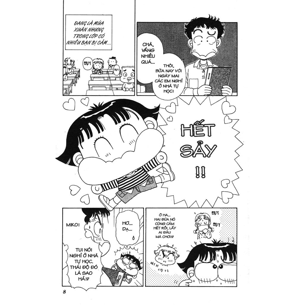 Mua tại TiktokTuy dáng người nhỏ nhắn, nhưng Miko là một cô nhóc cực kỳ khỏe khoắn năng động. Cuộc sống quanh cô nhóc lúc nào cũng rộn ràng. Mari ôm mộng làm họa sỹ truyện tranh, nên cùng Miko vẽ truyện gửi dự thi, mối quan hệ tay ba giữa Miko với Yoshida - thích Miko và Haruna - thích Y Hãy cùng thưởng thức tập truyện và sống vui tươi mỗi ngày giống Miko các bạn nhé!