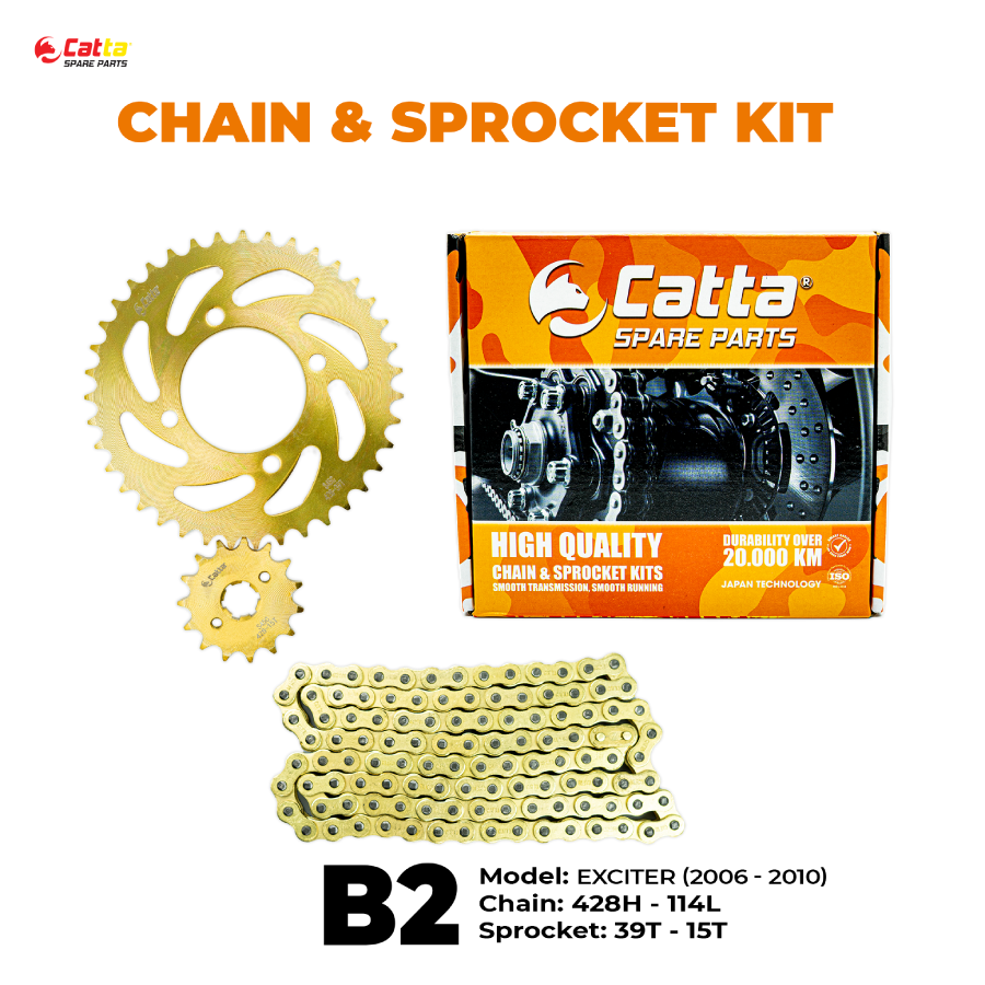 BỘ NHÔNG SÊN DĨA EXCITER (2006 - 2010) THƯƠNG HIỆU CATTA SPARE PARTS Nhông sên dĩa Exciter (bộ nhông xích Exciter) thương hiệu CATTA Spare Parts được sản xuất từ thép carbon S45C chuyên dụng
