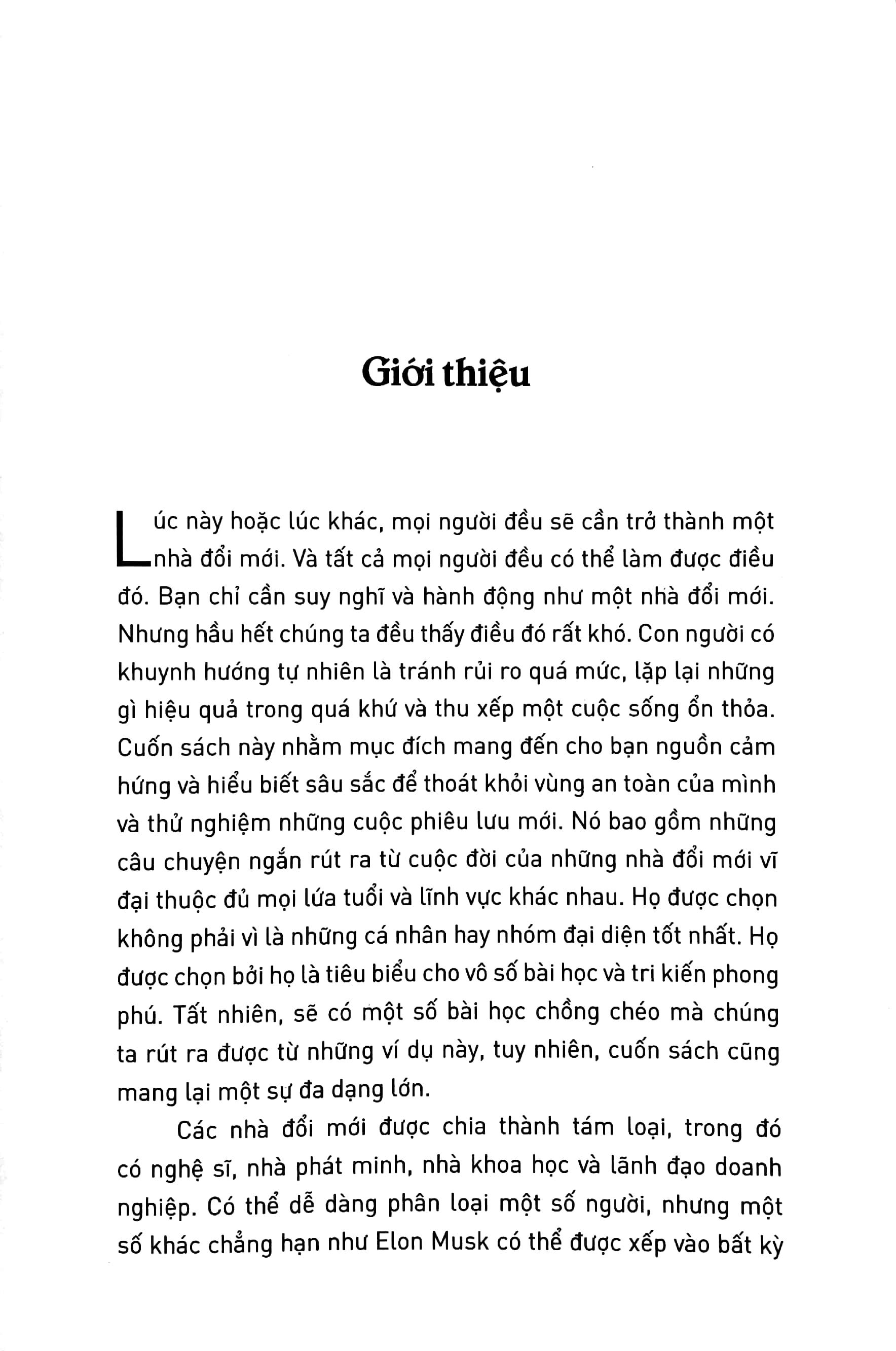 Cuộc đời và sự nghiệp của những nhà đổi mới vĩ đại này sẽ đem lại tri kiến, sức mạnh, niềm tin và truyền cảm hứng cho tất cả chúng ta trên con đường đổi mới sáng tạo của riêng mình.
