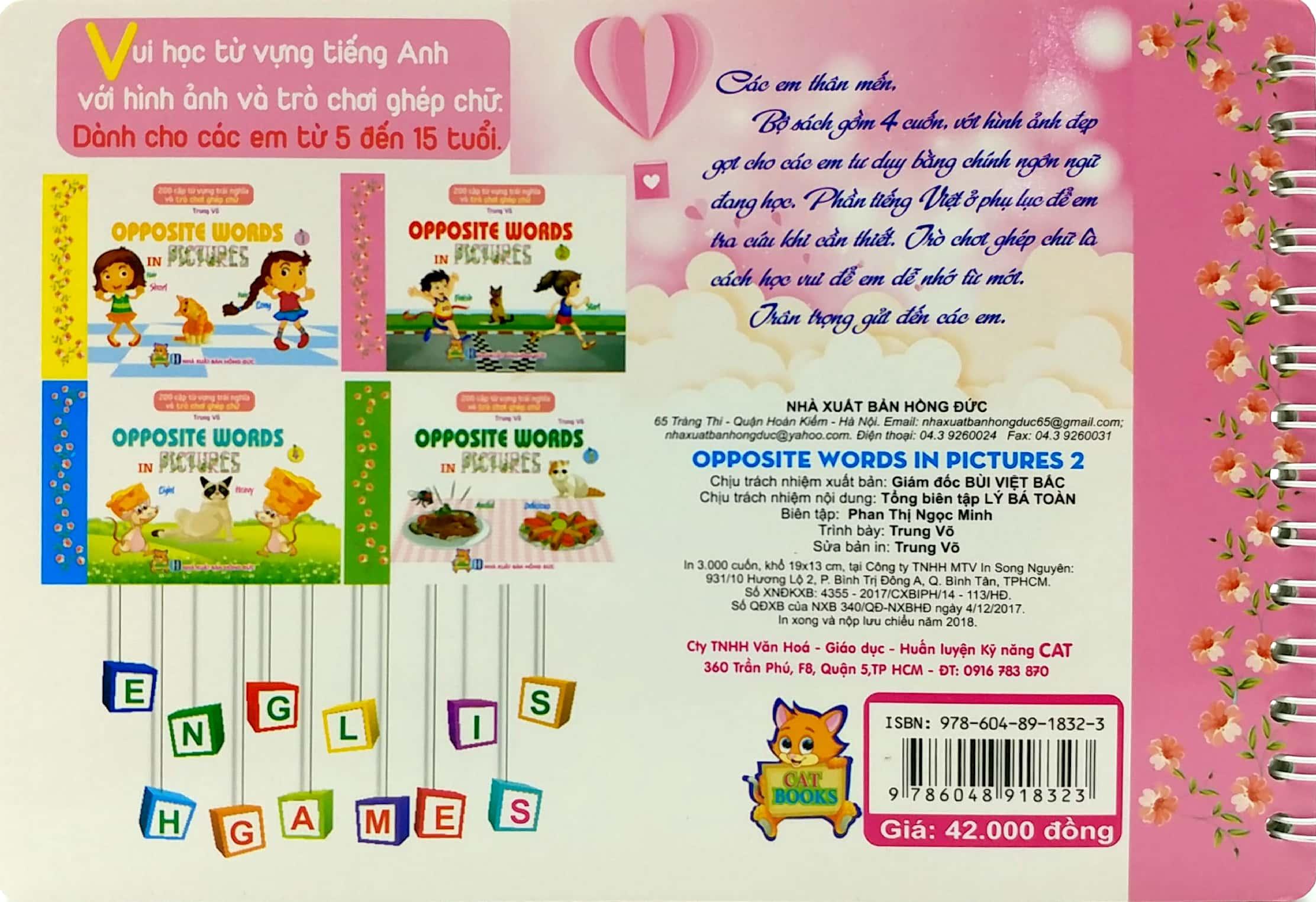 Những Cặp Từ Vựng Trái Nghĩa Và Trò Chơi Ghép Chữ - Opposite Words In Pictures (Tập 2) Các em thân mến, Bộ sách gồm 4 cuốn, với hình ảnh đẹp gợi cho các em