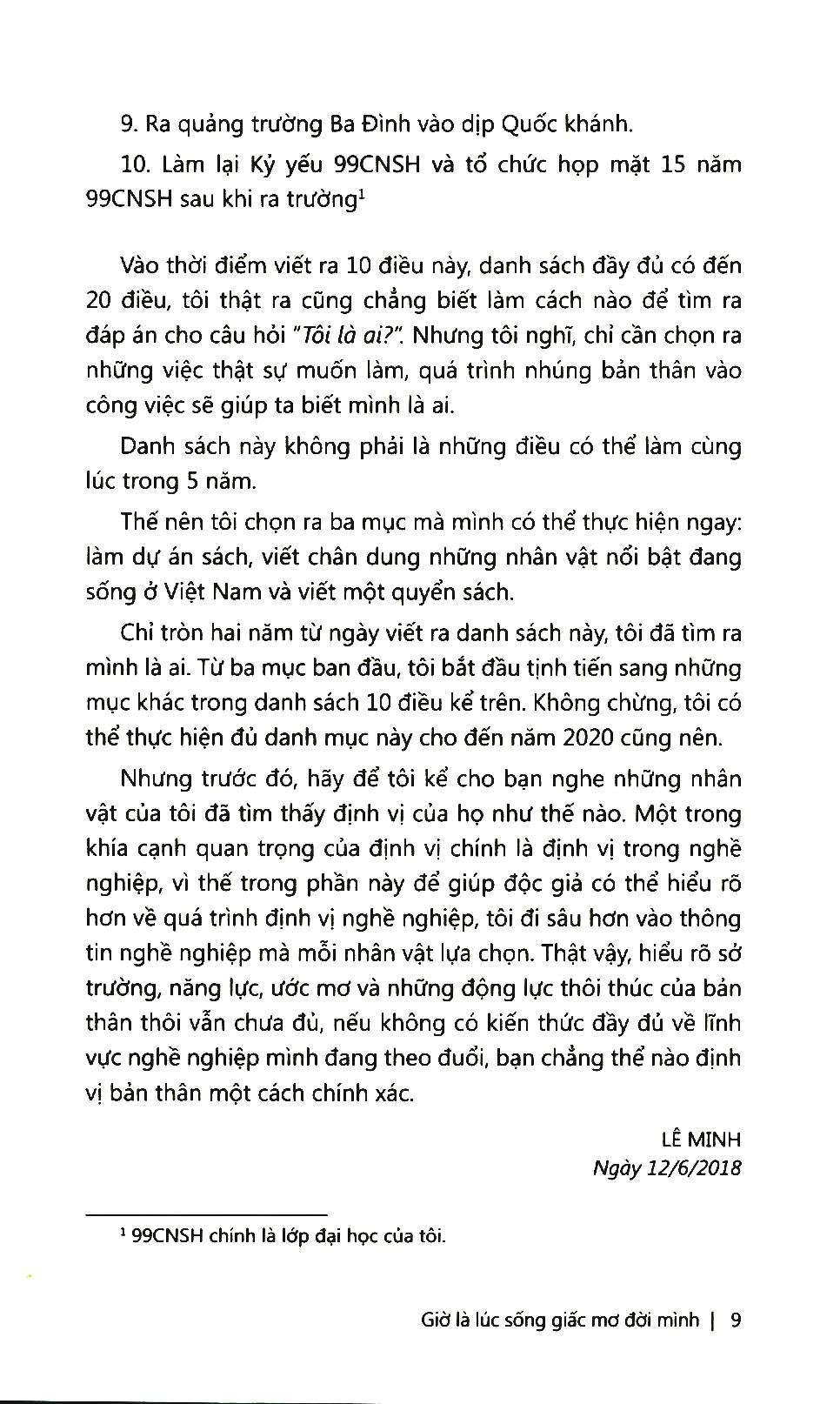 Suốt 8 năm theo đuổi con đường báo chí, không ai dạy cho chị khi nào nên dừng lại, khi nào khi nên rẽ trái, khi nào thì phải kiên nhẫn chịu đựng mà âm thầm bước đi, tất cả những gì chị học được đều nhờ những thử thách trên đường, những quyển sách đã đọc và một tiếng gọi từ bên trong. Nếu như chị em mình có thể chia sẻ với nhau nhiều bài học chung từ những quyển sách hay thì việc vượt qua thử thách trên mỗi con đường sẽ là thứ tài sản mà chỉ riêng mình ta có được. Tất cả những ý niệm “đúng đường”, “lạc đường”, “con đường dành cho ta” chỉ có thể được định nghĩa sau khi ta đã trải qua rất nhiều con đường. Tiếng gọi từ bên trong sẽ giúp em tìm ra bộ đáp án cho riêng mình”.