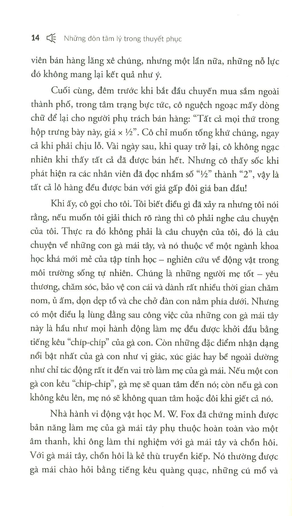 Với Những Đòn Tâm Lý Trong Thuyết Phục, bạn sẽ có lời giải đáp cho tất cả những câu hỏi ấy. Trong Những Đòn Tâm Lý Trong Thuyết Phục, nhà tâm lý học nổi tiếng Robert B. Cialdini tiết lộ 6 ""v.ũ khí"" gây ảnh hưởng đầy uy lực: cam kết và nhất quán, khan hiếm, đáp trả, bằng chứng xã hội, uy quyền và thiện cảm. Mỗi loại lại bị chi phối bởi một nguyên tắc tâm lý cơ bản điều khiển hành vi con người và nhờ đó mà tạo nên sức mạnh cho mỗi thủ thuật. Đặc biệt khi được kết hợp với nhau, chúng sẽ tạo ra ảnh hưởng vô cùng lớn.