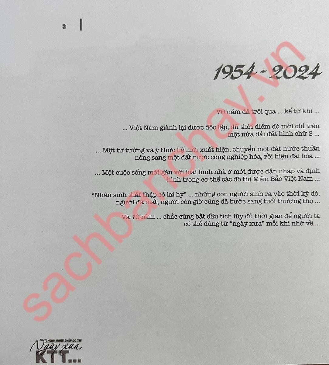 KHU TẬP THỂ – một mô hình cư trú đô thị của (Miền Bắc) Việt Nam, mang tính đại diện và đặc thù đến mức, trong các nghiên cứu của các học giả nước ngoài, thường được nhắc đến như một danh từ riêng và được viết tắt bằng ba chữ cái – KTT. Tuy “nổi tiếng” là thế, nhưng trong xu hướng tái thiết và hiện đại hóa diện mạo đô thị, những KTT đang đứng trước nguy cơ bị phá bỏ để thay thế bằng những dự án mới với những kiến trúc mới, to hơn, cao hơn, và đẹp hơn, mang tính biểu tượng hơn cho sự phát triển của Việt Nam. Và rồi cũng sẽ đến một ngày khi mà các KTT không còn tồn tại nữa, trở thành tiềm thức trong những câu chuyện, bài học về đô thị của tương lai. Liệu lúc đó, những gì mà các thực thể không gian đô thị này đã đóng góp cho nền kiến trúc nước nhà trong một giai đoạn đầy biến động có còn được nhớ đến đầy đủ? Nội dung quyển sách được chuyển tải trong 9 chương theo thứ tự diễn tiến vòng đời của các KTT từ quá khứ, đến hiện tại và tương lai được chia làm ba phần.