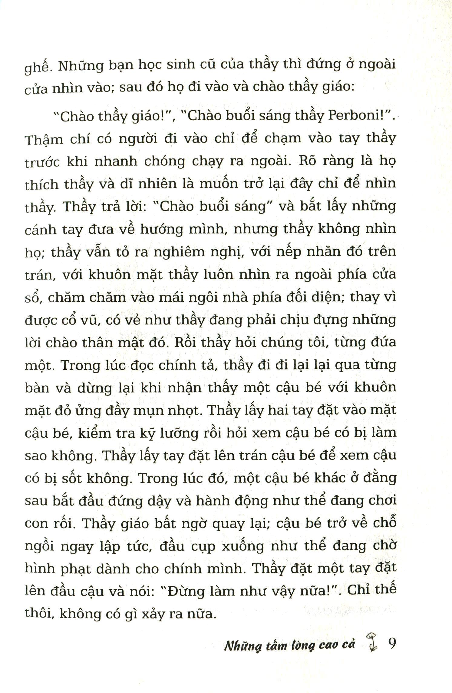 Xuyên suốt tiểu thuyết là những vấn đề xã hội như sự nghèo đói, Những tấm lòng cao cả được yêu chuộng vì văn phong giản dị và ý nghĩa giáo dục về tình nhân ái.Những tấm lòng cao cả được viết theo hình thức nhật ký của Enrico Bottini, một cậu học trò 10 tuổi học tiểu học ở Ý. Gia đình cậu thuộc tầng lớp thượng lưu trong khi nhiều bạn cùng lớp lại xuất thân từ tầng lớp lao động.