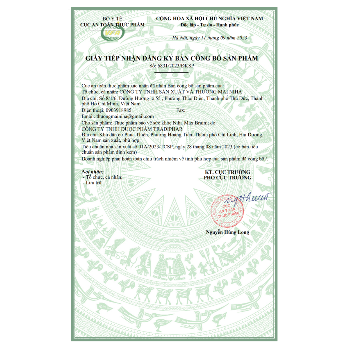 Cao Đinh lăng (Polyscias fruticosa): 80mg. Cao Bạch quả (Ginkgo biloba): 40mg. Cao Ngưu tất (Achyranthes bidentata): 40mg. Cao Vỏ liễu trắng(Salix alba): 35mg. Cao Bình vôi (Stephania sinica): 35mg. Cao Tâm sen (Nelumbo nucifera): 35mg. Cao Thiên ma (Gastrodia Elata): 30mg. Cao Nữ lang (Valeriana hardwickii): 30mg. Cao Câu đằng (Uncaria rhynchophylla): 20mg Aquamin magie: 10mg (tương đương 3,97mg magie). Citicoline sodium: 5mg. Nattokinase 20000FU/g: 5mg (tương đương 100FU). Vitamin B6 (Pyridoxin hydroclorid): 2mg, Coenzyme Q10: 1,5mg. 5-HTP (5-Hydroxytryptophan): 1,