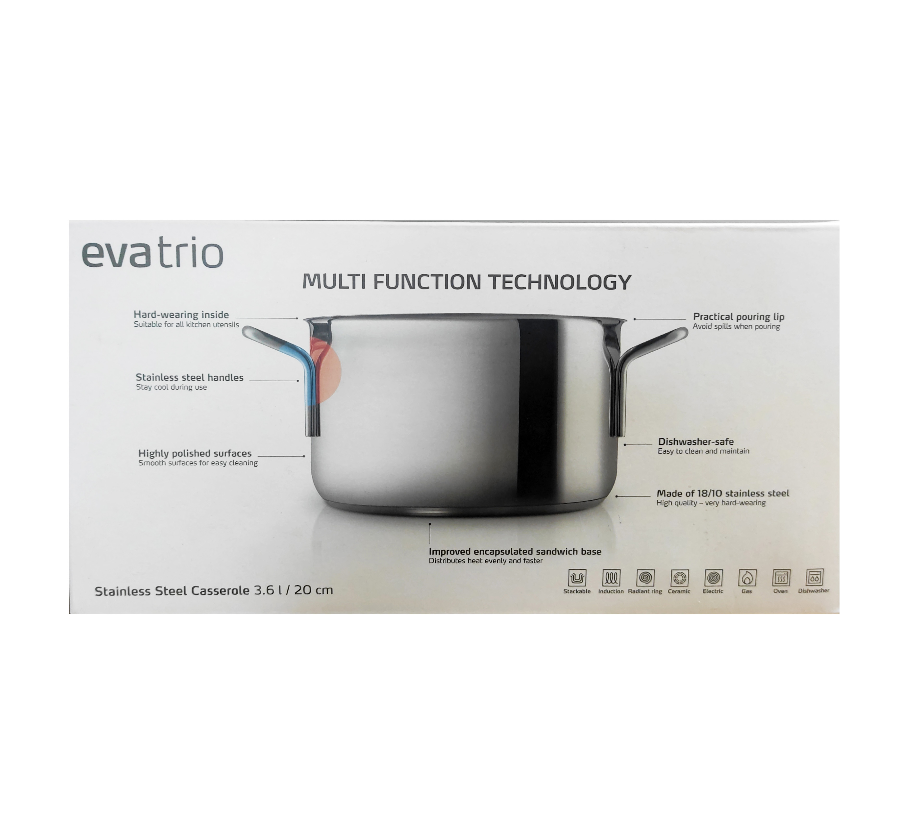 Nồi 3.6L 20cm Eva Solo, dòng thép không gỉ. Thiết kế kết hợp kiểu dáng sang trọng và chức năng tạo nên một sản phẩm hiện đại cổ điển. Vui lòng đọc kỹ hướng dẫn
