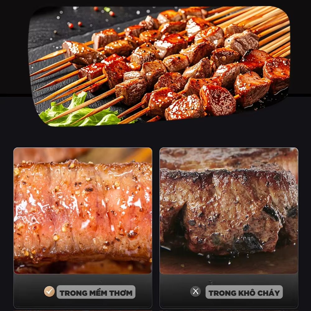 - Với công suất 1700w nhiệt được phân bố tối ưu với luồn khí nóng đối lưu nên thức ăn ko cần lật. Bề mặt vỏ inox sang trọng, tay cầm được chống nóng, thành