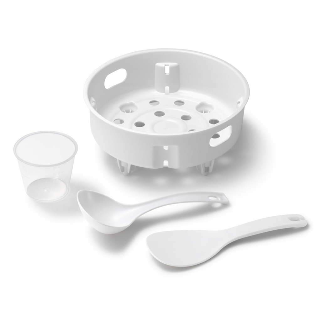 ️ Hẹn giờ lên đến 24 tiếng, với khóa an toàn ️ Chất liệu: + Cốc đong gạo, muỗng múc cơm, xửng hấp bằng chất liệu nhựa PP an toàn khi tiếp xúc thực phẩm