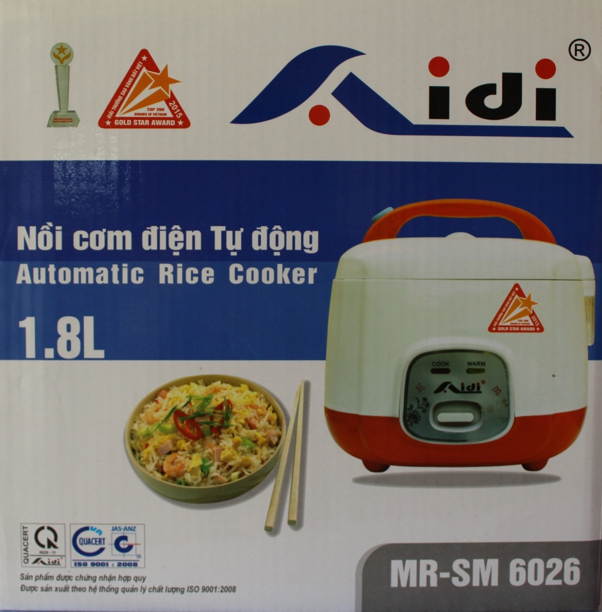 Nồi cơm điện là sản phẩm không thể thiếu trong mỗi gia đình. Với một chiếc nồi cơm điện có thiết kế độc đáo như Nồi Cơm Điện Nắp Gài Thân Nhựa Ủ Đa Chiều Aidi MR-SM 6026 (1,8 lít) - Màu Ngẫu Nhiên- Chính Hãng, việc nấu nướng sẽ trở nên dễ dàng và thú vị hơn rất nhiều. Không những thế, lòng nồi được phủ lớp chống dính Whitford (USA), cấu tạo vung kép giữ nhiệt tốt sẽ giúp bữa cơm gia đình thêm thơm ngon, tròn vị.Nếu bạn là một người yêu thích phong cách trẻ trung, độc đáo thì chiếc Nồi Cơm Điện Nắp Gài Thân Nhựa Ủ Đa Chiều Aidi MR-SM 6026 (1,8 lít) - Màu Ngẫu Nhiên- Chính Hãng chính là lựa chọn vô cùng hoàn hảo cho bạn và gia đình.