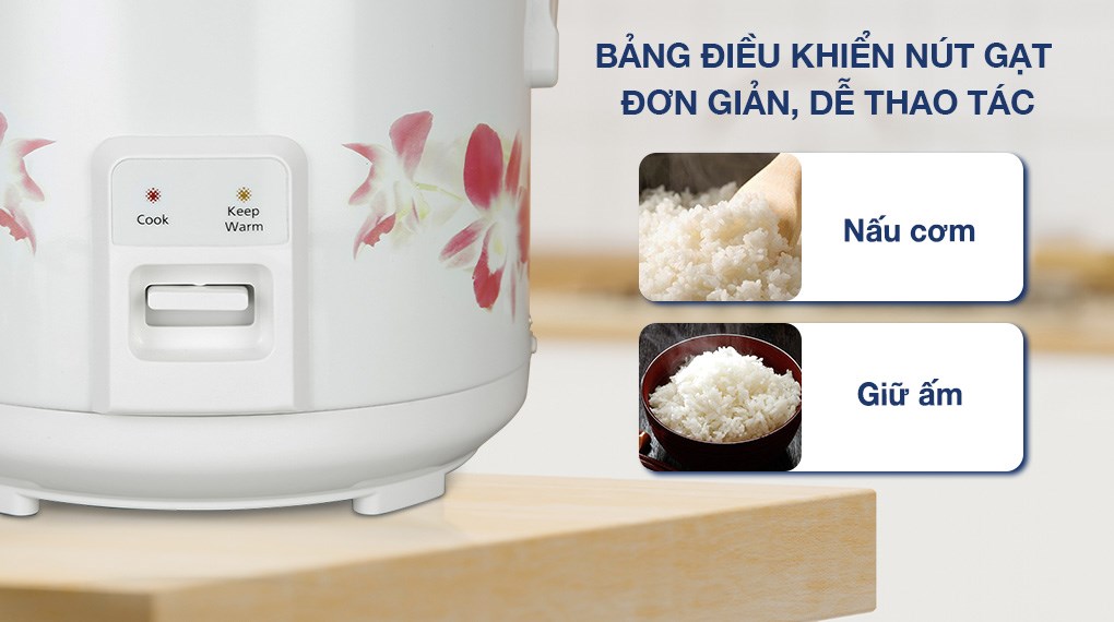 Đặc điểm nổi bật Dung tích 1 lít thích hợp cho gia đình 2 - 4 thành viên Thiết kế nhỏ gọn hiện đại nâng tầm không gian bếp Nồi cơm điện với hệ thống