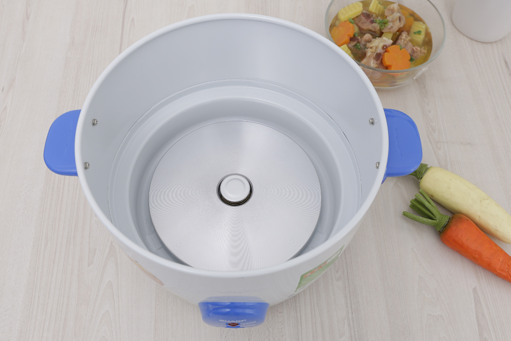 Thông số kỹ thuật Nồi cơm nắp rời Sharp 7 lít KSH-D77V - Loại nồi: Nồi cơm nắp rời - Dung tích: 7 lít, Số người ăn 15 - 20 người - Công suất: 2000W - Lòng nồi dày: 1.913 mmNhôm không chống dính - Điều khiển: Nút gạt - Tiện ích: Thiết kế tay cầm tiện lợi - Thương hiệu của: Nhật Bản - Hãng Sharp Thông tin sản phẩm Nồi cơm nắp rời Sharp 7 lít KSH-D77V nhập khẩu từ Thái Lan, nấu cơm chín nhanh nhờ công nghệ nấu 1D, dung tích lớn 7 lít, nút gạt dễ thao tác,... hỗ trợ chế biến khẩu phần cơm cho gia đình đông người hay quán ăn. Công nghệ nấu, công suất - Dung tích - Công nghệ nấu 1D kết hợp công suất mạnh mẽ 2000W giúp nấu cơm chín nhanh, tiết kiệm điện năng và thời gian. - Nấu được hơn 10 cốc gạo kèm nồi, đáp ứng khẩu phần ăn cho khoảng 15 - 20 người nhờ dung tích lớn 7 lít. Bảng điều khiển - Chế độ nấu - Bảng điều khiển nút gạt đơn giản, có đèn báo tiện quan sát tình trạng cơm, ngay cả người lớn tuổi cũng có thể sử dụng dễ dàng. - Nồi có 2 chế độ: nấu cơm và giữ ấm. Thiết kế, chất liệu của sản phẩm - Nồi cơm điện Sharp có màu trắng trang nhã, nắp rời tiện lợi, có tay cầm để dễ di chuyển nồi. - Lòng nồi bằng nhôm không chống dính, gia nhiệt tốt, nấu cơm chín nhanh Phụ kiện - Mẫu nồi cơm điện này có các phụ kiện đi kèm: muỗng cơm và cốc đong. Nồi cơm nắp rời Sharp 7 lít KSH-D77V là giải pháp hiệu quả giúp nấu cơm số lượng nhiều và muốn cơm chín nhanh, phù hợp cho những gia đình đông người hay quán cơm, nhà hàng,...
