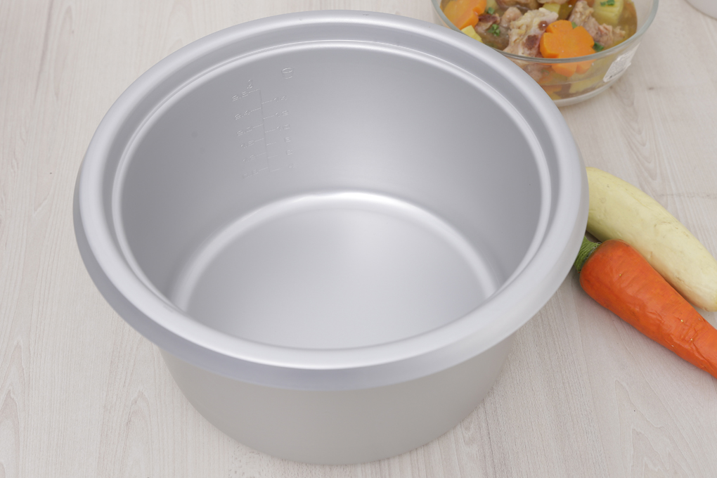 Lòng nồi cơm nắp rời 1 lớp dày 1.1 mm bằng nhôm có độ bền và an toàn khi nấu cơm, dễ chùi rửa nồi sau khi nấu