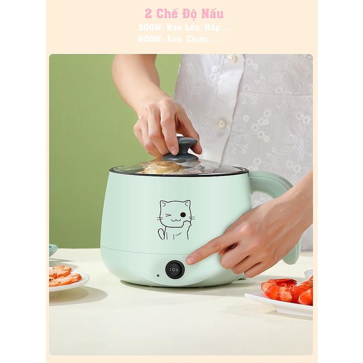 ✨Nồi Điện Đa Năng Chống Dính Mini Tặng Kèm Lồng Hấp Nấu Mỳ, Lẩu, Cơm DM111 Phù Hợp Cho 1-2 Người - Dung Tích 1.8L