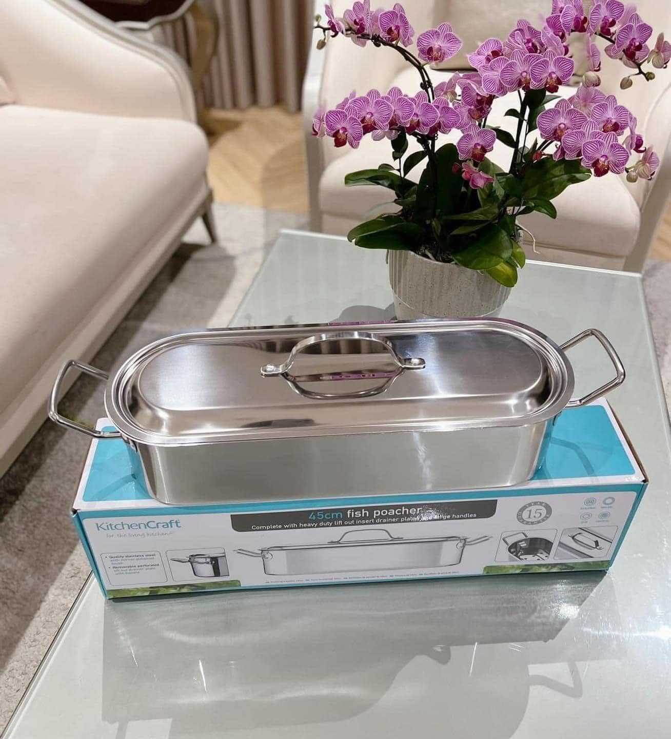 Nồi Hấp cá Kitchen Craft có nắp đậy được làm bằng thép Cromagran không gỉ cao cấp, siêu bóng sáng đẹp