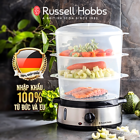 ✨Nồi Hấp Điện 3 Tầng Russell Hobbs 19270-56, 9 lít, 2 cửa cấp nước, công suất 800w, công tắc tự động, an toàn - Hàng chính hãng nhập khẩu từ Đức & EU