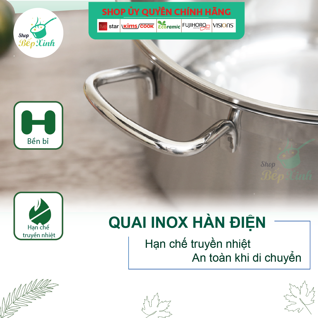 Nồi được làm bằng thép không gỉ 18/10, chế biến nhiều món ăn đa dạng, an toàn nhờ đặc tính chống khuẩn. Thông tin chi tiết: Màu inox bóng sáng góp phần làm căn bếp