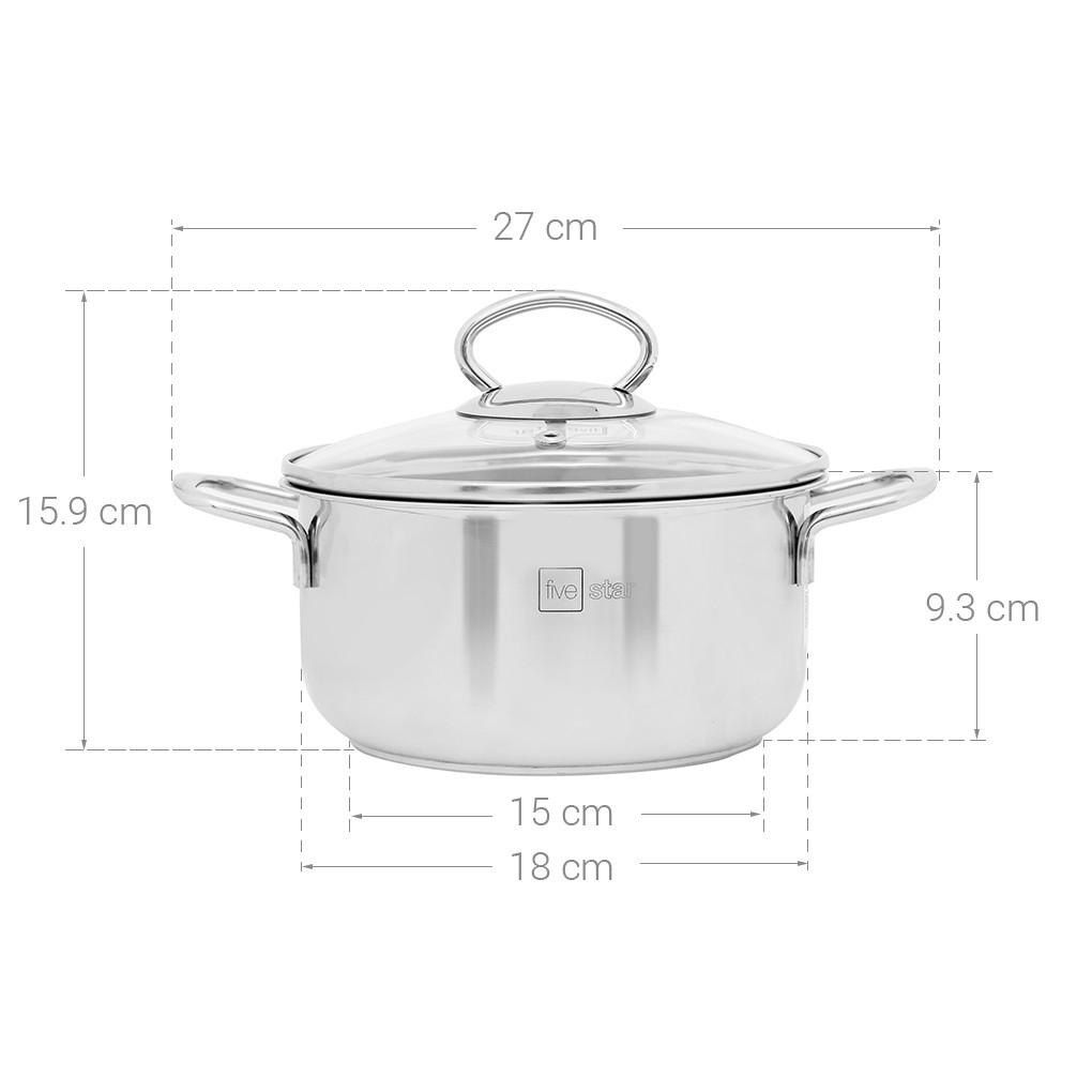 Nồi Inox 304 chống dính 3 đáy Fivestar 20cm dùng bếp từ, chính hãng bảo hành 60 tháng #sanhangre