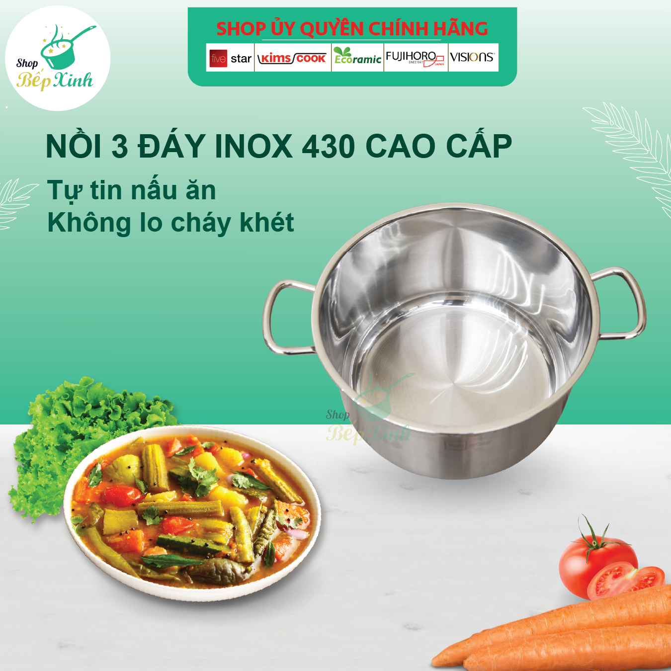 Đáy 3 lớp truyền nhiệt nhanh – giúp nấu chín đều, tiết kiệm thời gian Vung kính chịu nhiệt có lỗ thoát hơi – tiện theo dõi món ăn không cần mở nắp Chất liệu