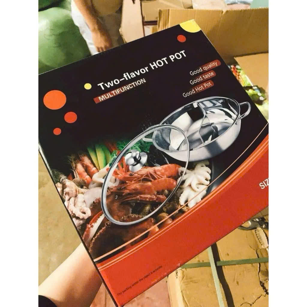 Nồi lẩu 2 ngăn 32cm, nấu được bếp từ nhé có nắp kính - 085.990.8848