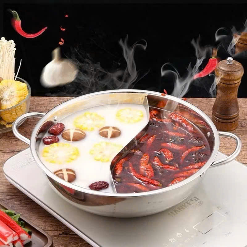 • Sử dụng được cho cả bếp từ và bếp gas: Nồi lẩu inox 2 ngăn có khả năng tương thích với cả bếp từ và bếp gas, giúp bạn linh hoạt sử dụng nồi trong mọi điều kiện bếp. Bạn không cần phải lo lắng về việc nồi không phù hợp với loại bếp nhà mình.